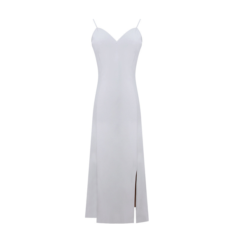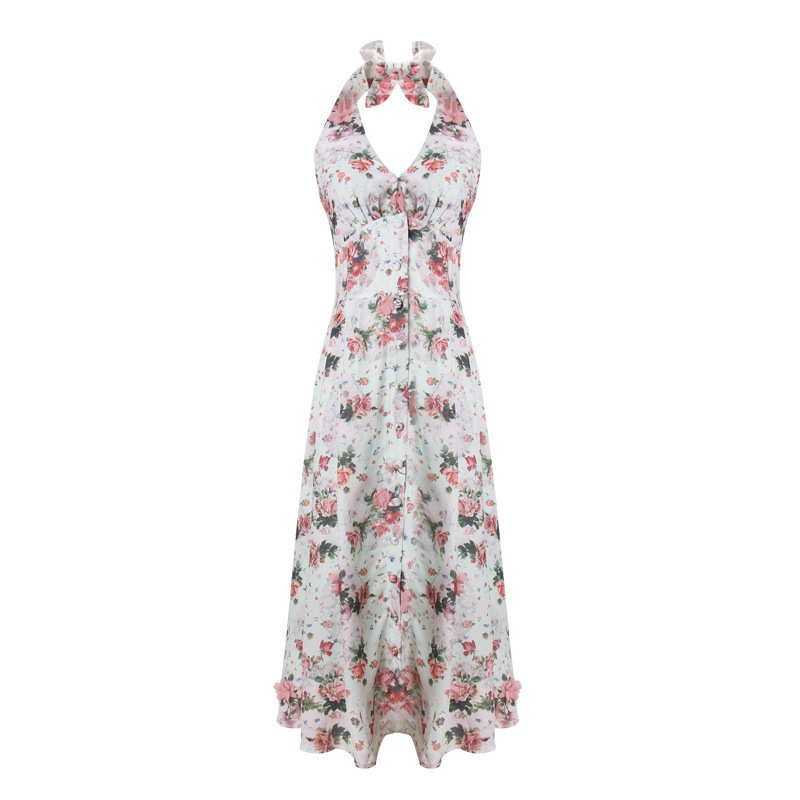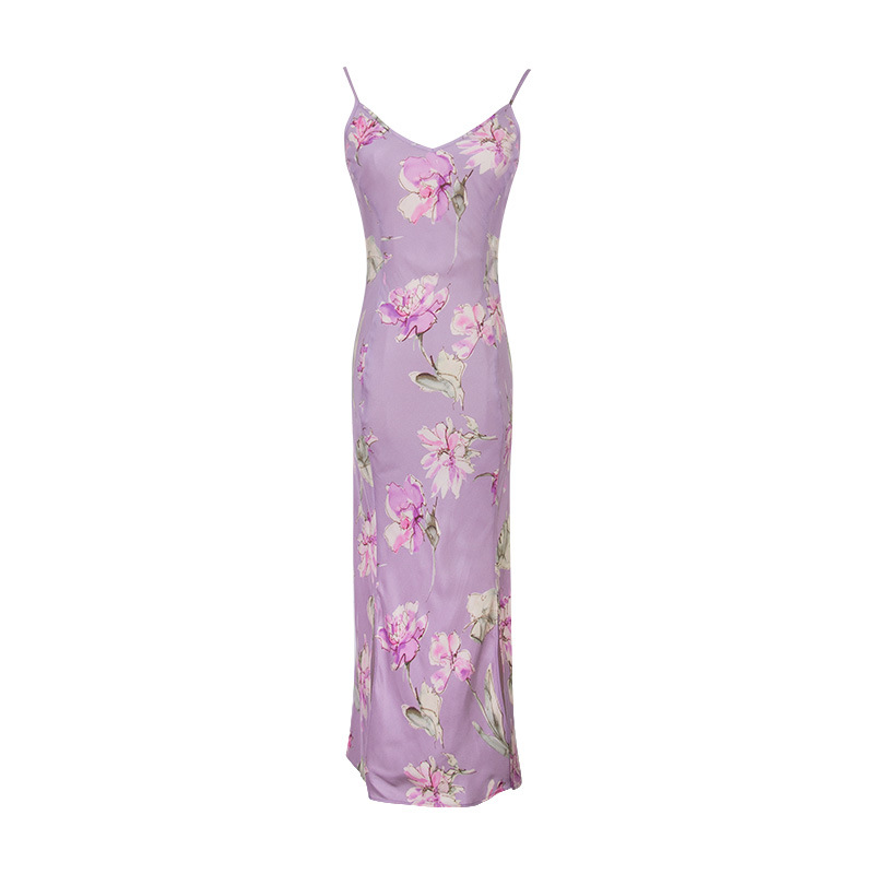 큰 언니 베고니아 플라워 오픈 실크 슬랜트 시리즈 우아한 프린트 슬립 스커트 V-넥 스플릿 원피스