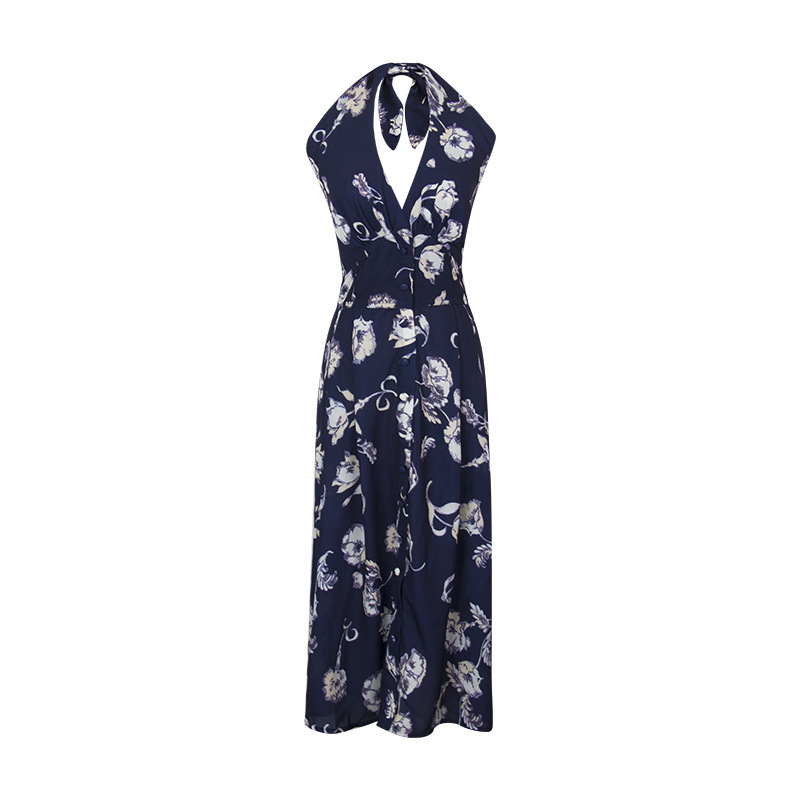 큰 언니 베고니아 플라워 오픈 실크 슬랜트 시리즈 우아한 프린트 슬립 스커트 V-넥 스플릿 원피스스토어 가기