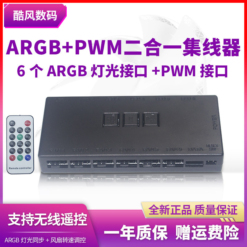 무선 원격 제어 5v ARGB 컨트롤러 1 점 6 허브 + PWM 온도 제어 2 대 1 5V 제어 마더 보드 동기화