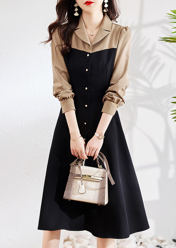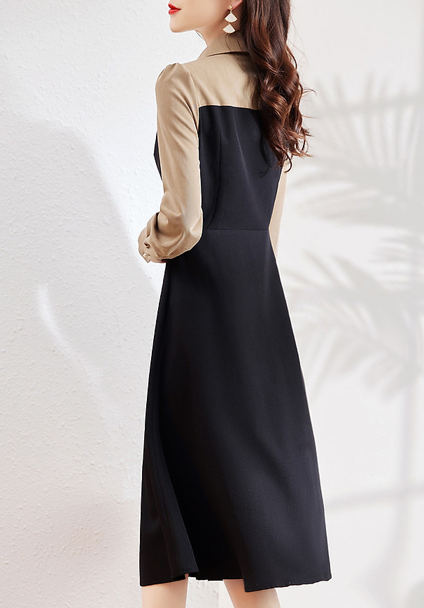 22 봄 새로운 한국 패션 우아한 간단한 기질 바느질 디자인 숙녀 가짜 두 긴 원피스