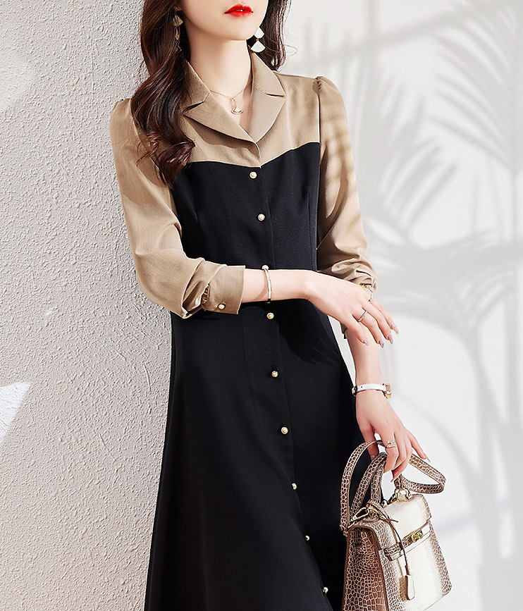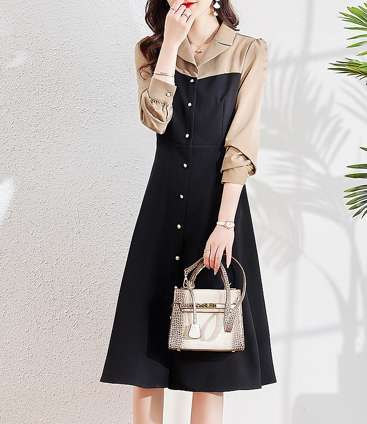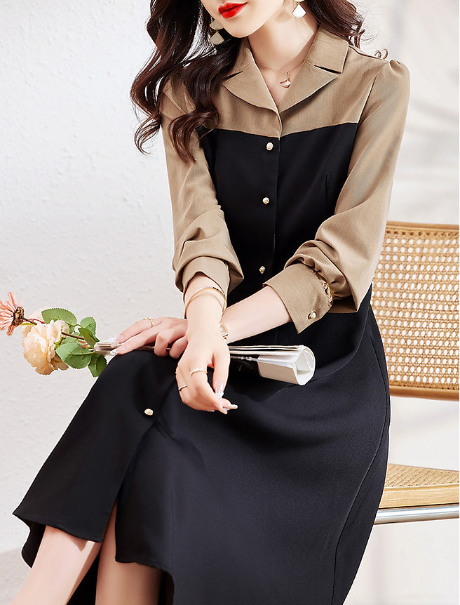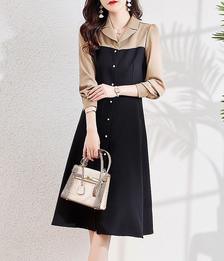 22 봄 새로운 한국 패션 우아한 간단한 기질 바느질 디자인 숙녀 가짜 두 긴 원피스스토어 가기