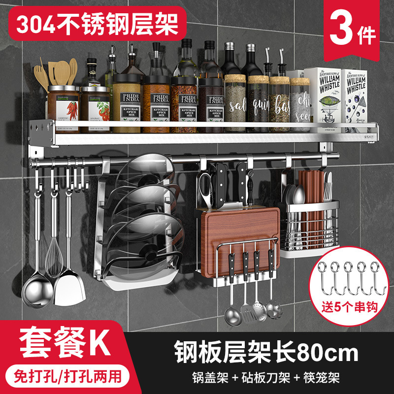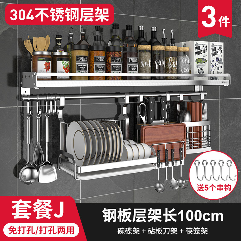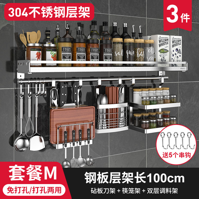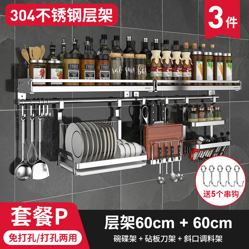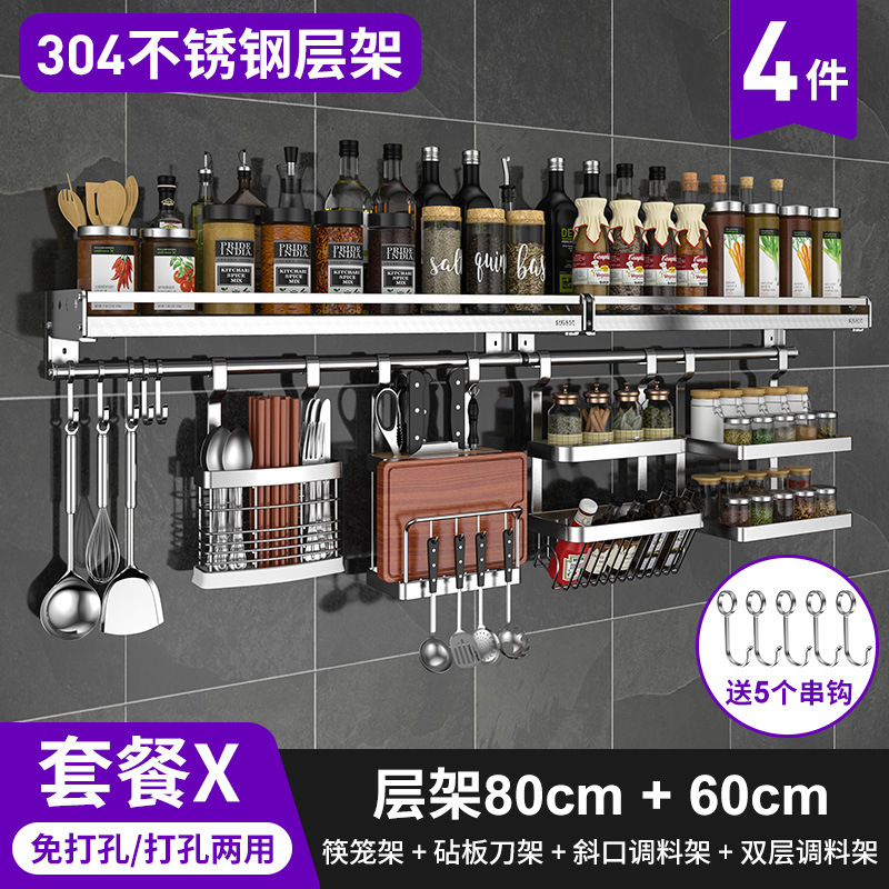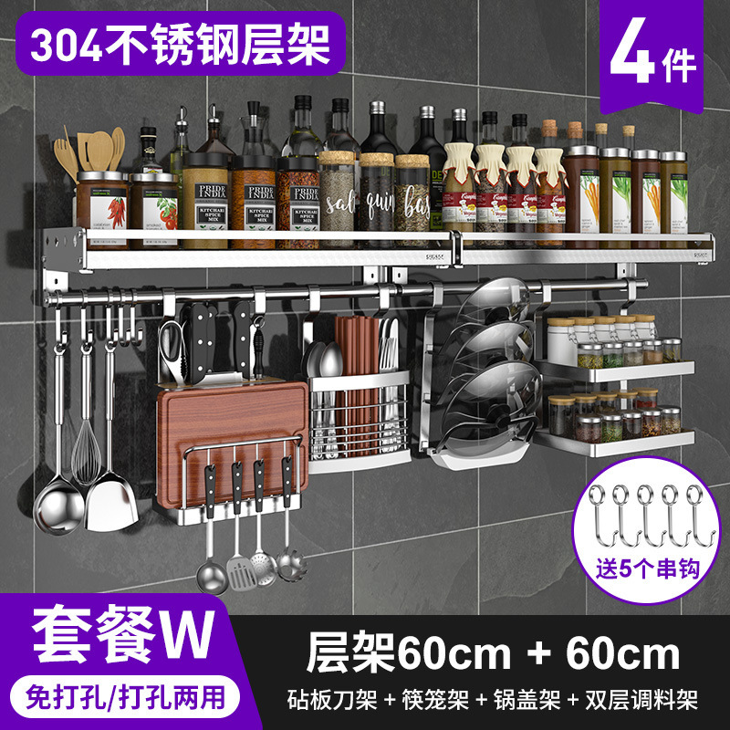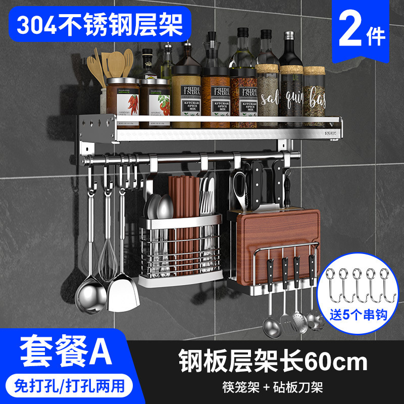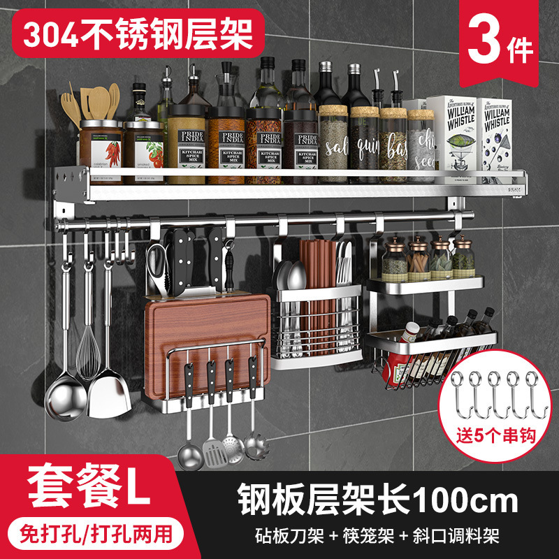 스테인레스 스틸 주방 수납 랙 향신료 랙 걸이 304 나이프 홀더 벽걸이 펀치 프리 스토리지 랙 두꺼운 통합