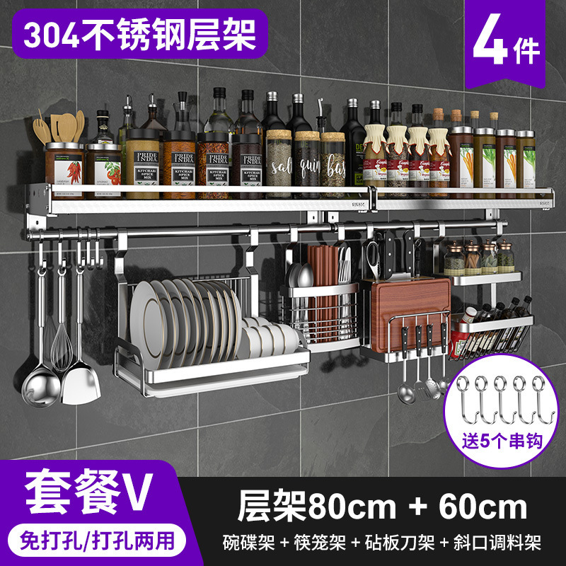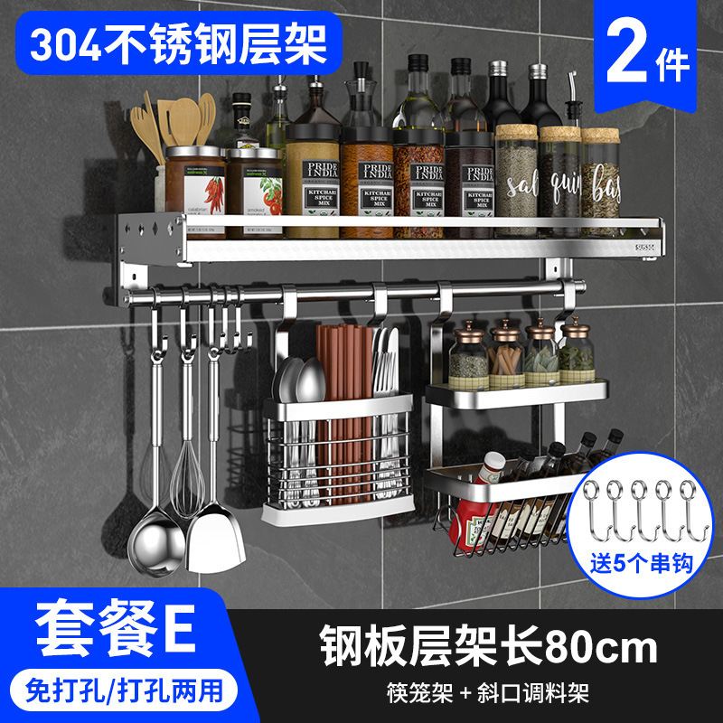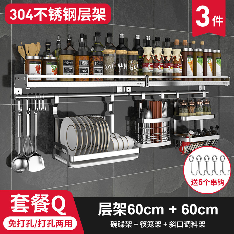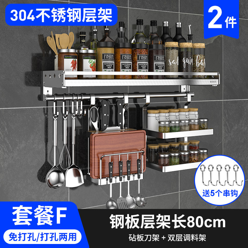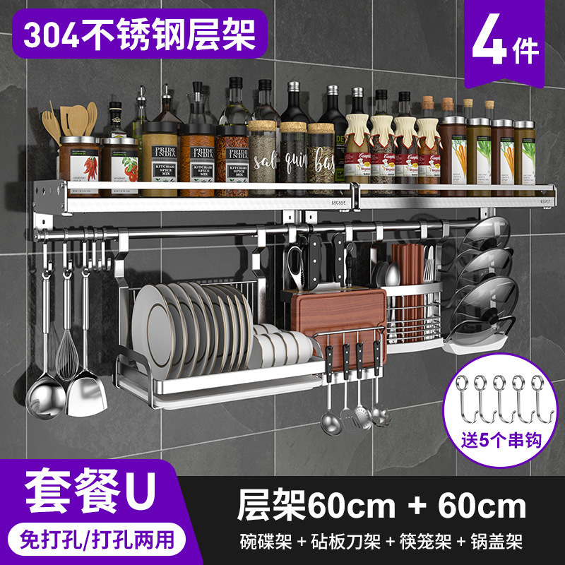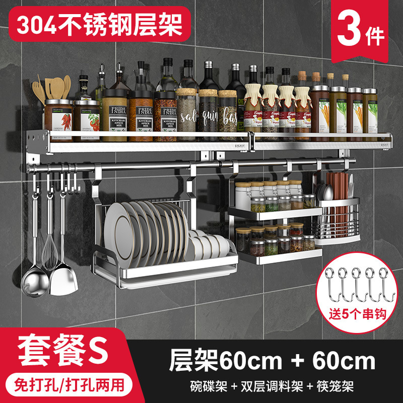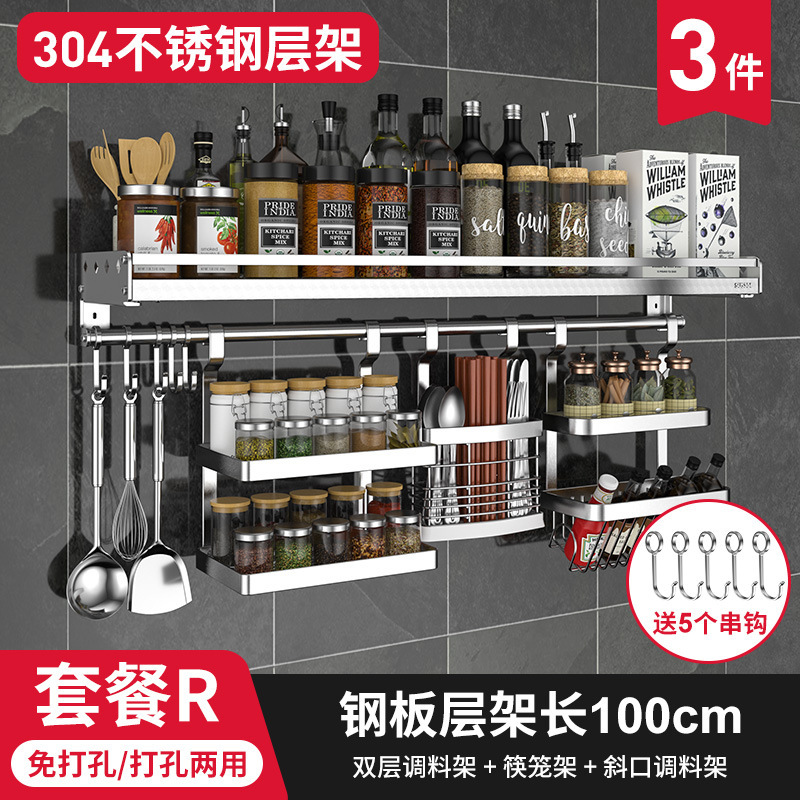 스테인레스 스틸 주방 수납 랙 향신료 랙 걸이 304 나이프 홀더 벽걸이 펀치 프리 스토리지 랙 두꺼운 통합
