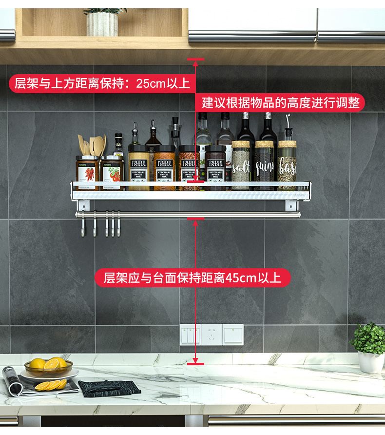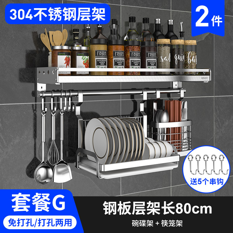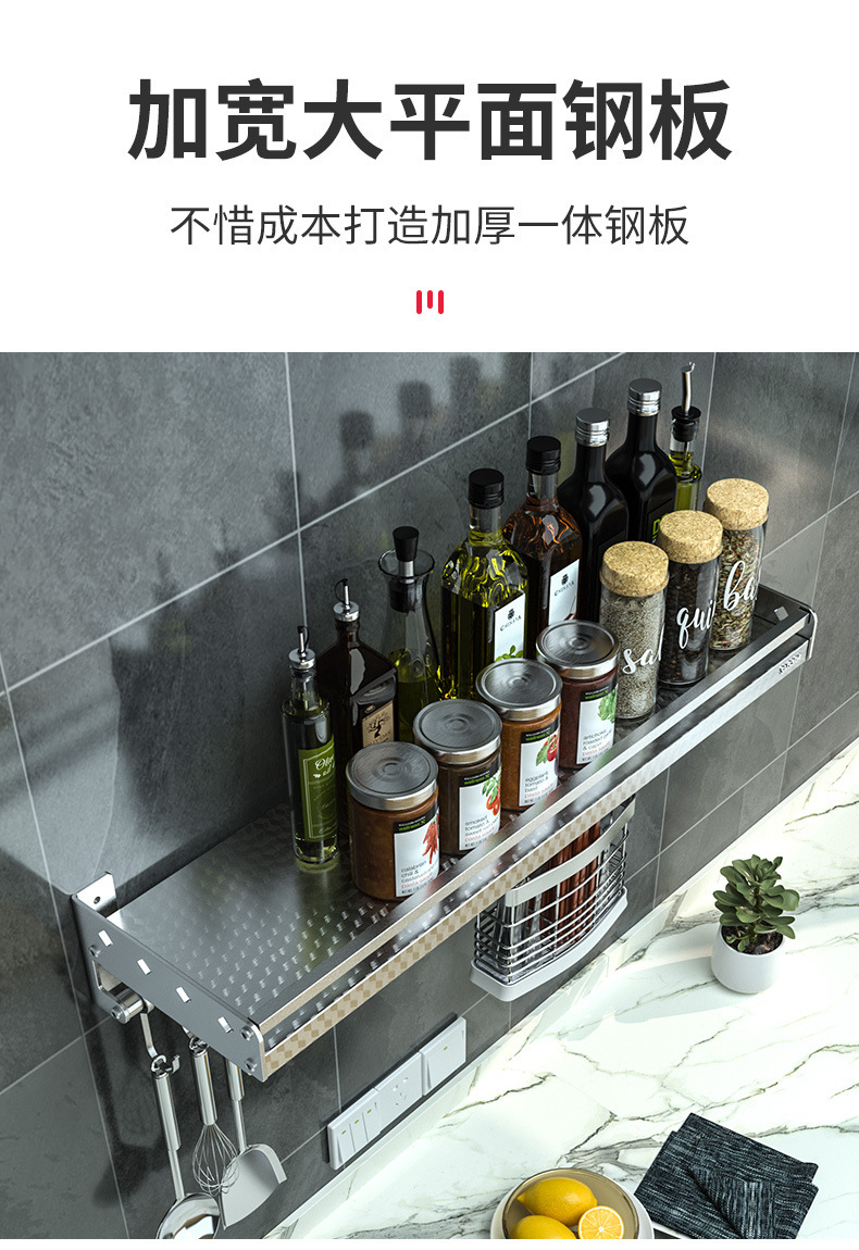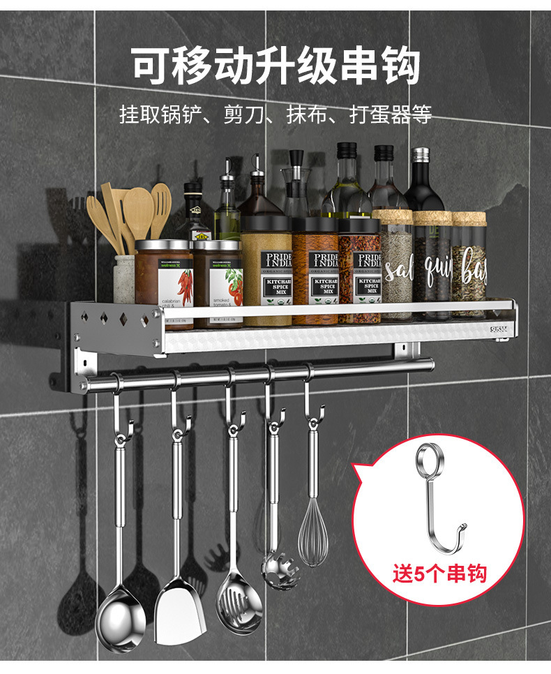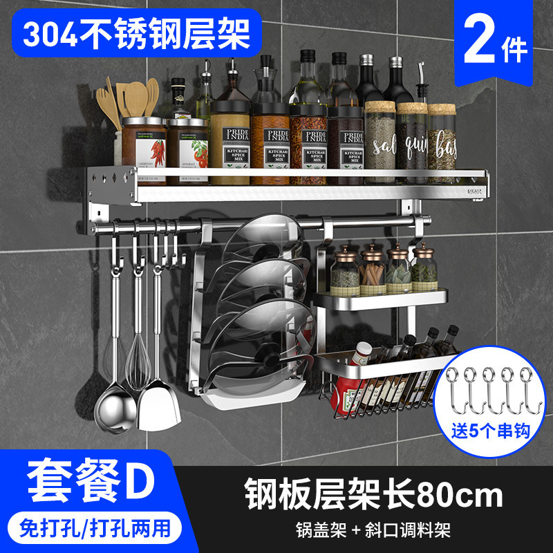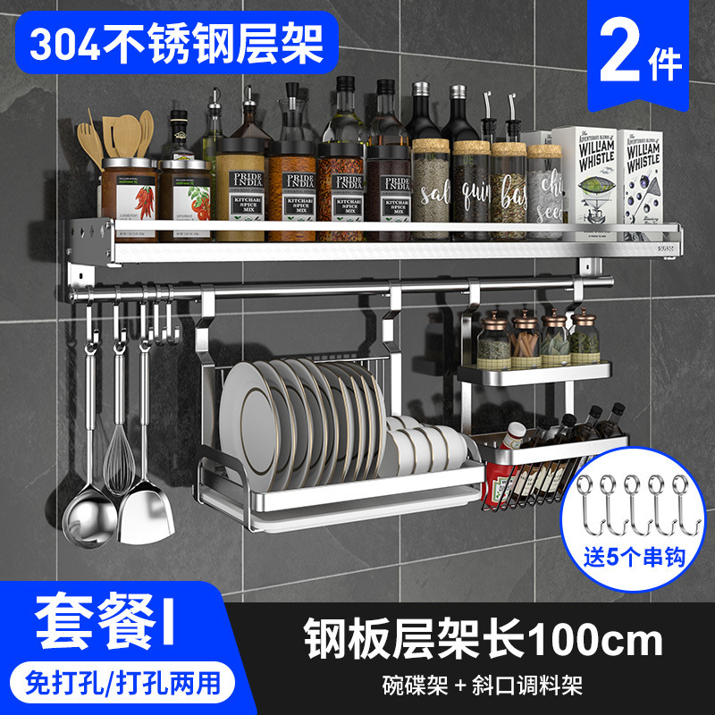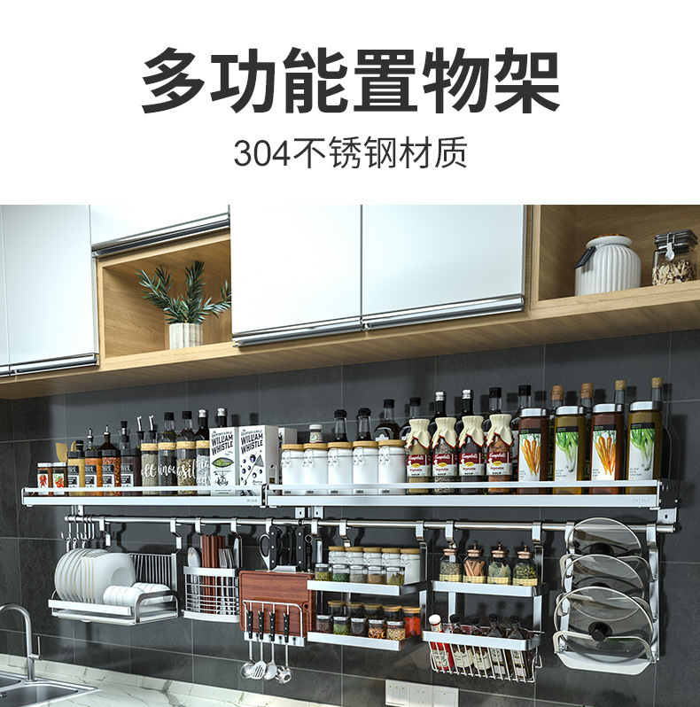 스테인레스 스틸 주방 수납 랙 향신료 랙 걸이 304 나이프 홀더 벽걸이 펀치 프리 스토리지 랙 두꺼운 통합