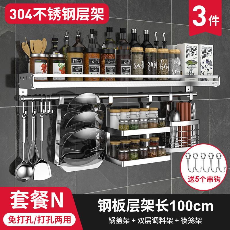 • N 냄비 덮개 랙 + 이중 조미료 랙 + 젓가락 케이지 + 100