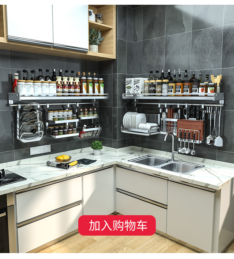 스테인레스 스틸 주방 수납 랙 향신료 랙 걸이 304 나이프 홀더 벽걸이 펀치 프리 스토리지 랙 두꺼운 통합스토어 가기