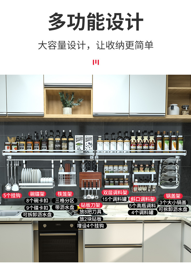• O 냄비 커버 랙 + 비스듬한 조미료 랙 + 젓가락 케이지 + 100