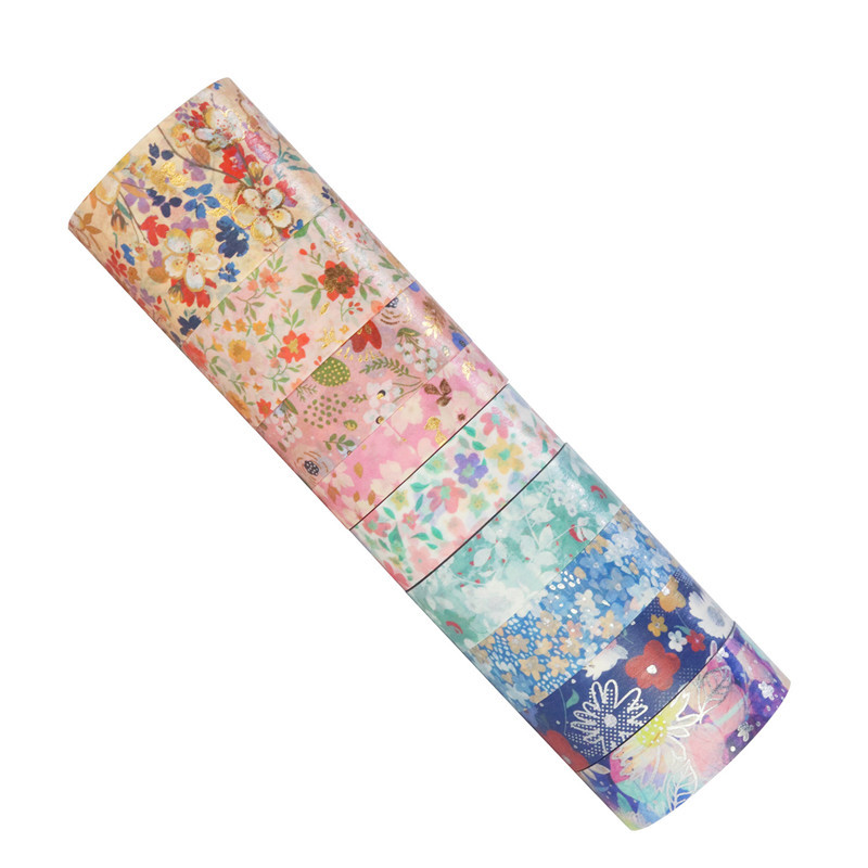 자연의 아름다움 창조적 인 꽃 풍경 소재 도금 실버 스탬핑 및 종이 테이프 diy 장식 저널 테이프
