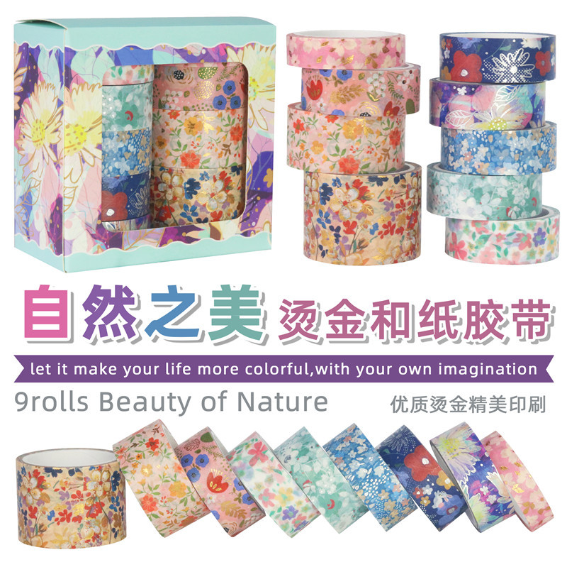 자연의 아름다움 창조적 인 꽃 풍경 소재 도금 실버 스탬핑 및 종이 테이프 diy 장식 저널 테이프스토어 가기