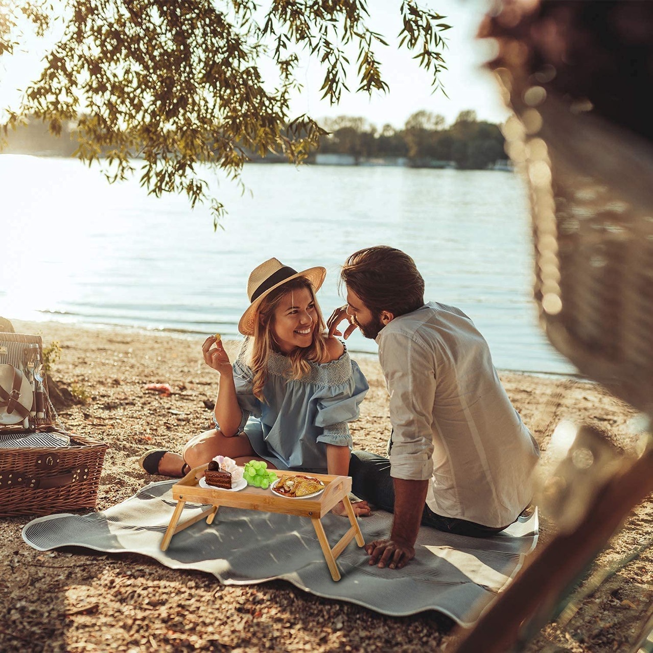 대나무 발 트레이 아침 식사 접시 과일 접이식 침대 직사각형 일본 차 호텔 트레이 크로스 보더 독점스토어 가기
