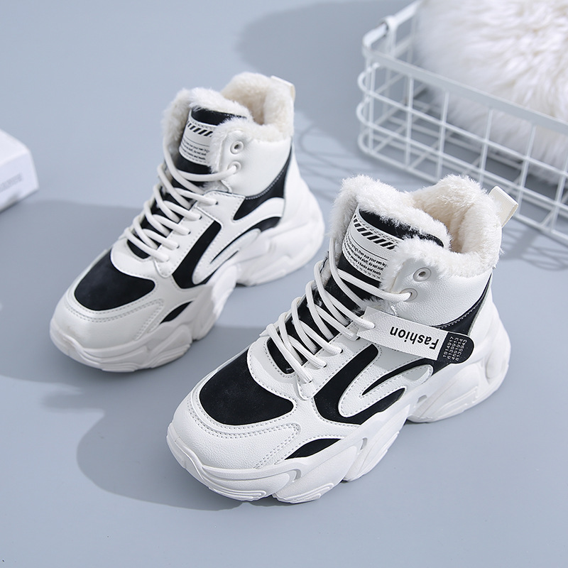 2025 겨울 신상품 여성용 스포츠 한국 스타일 두꺼운 밑창 아빠 신발 하이탑 보온 플러스 벨벳 여성 신발스토어 가기