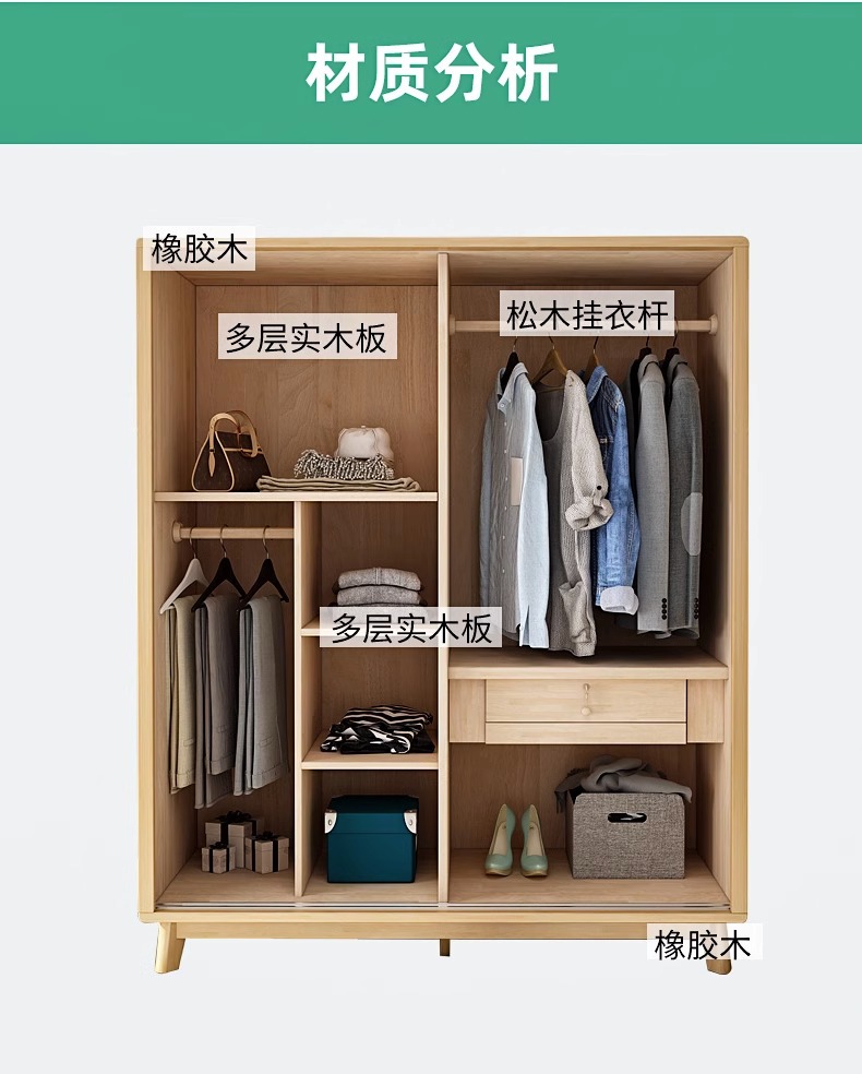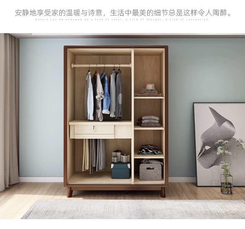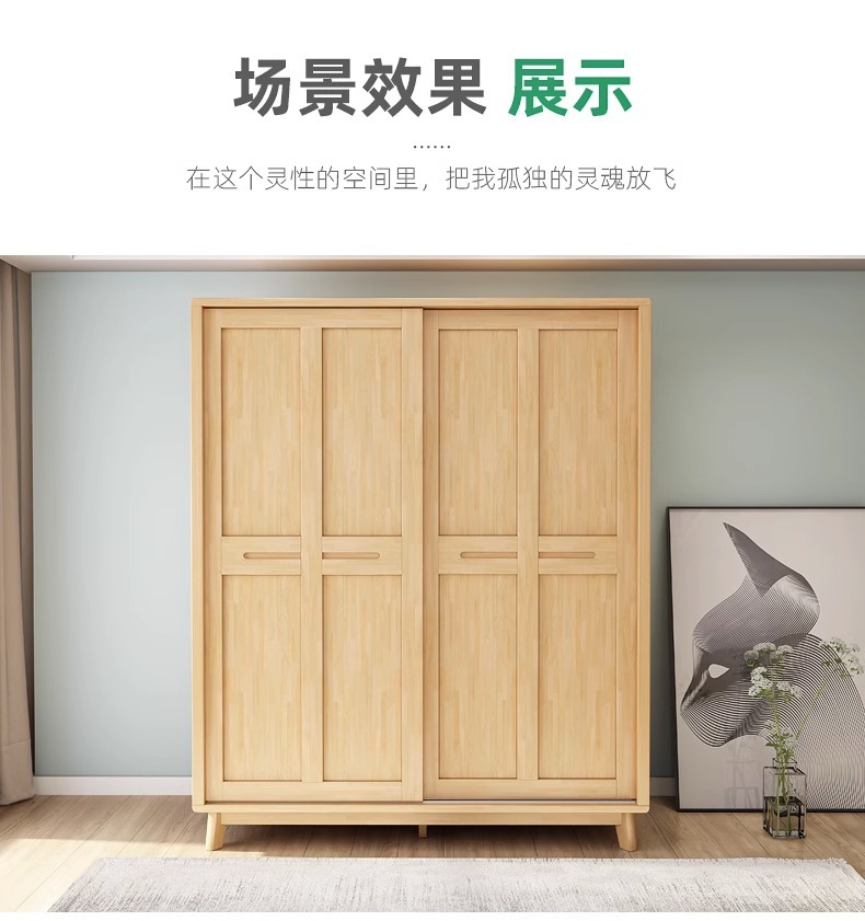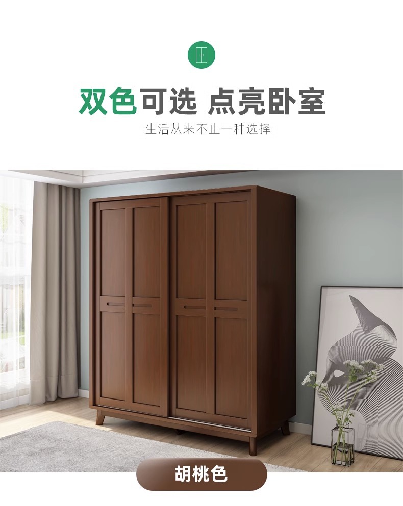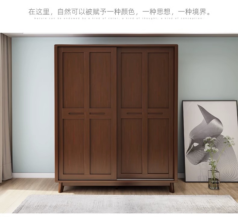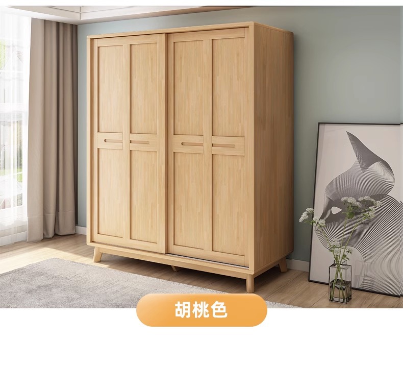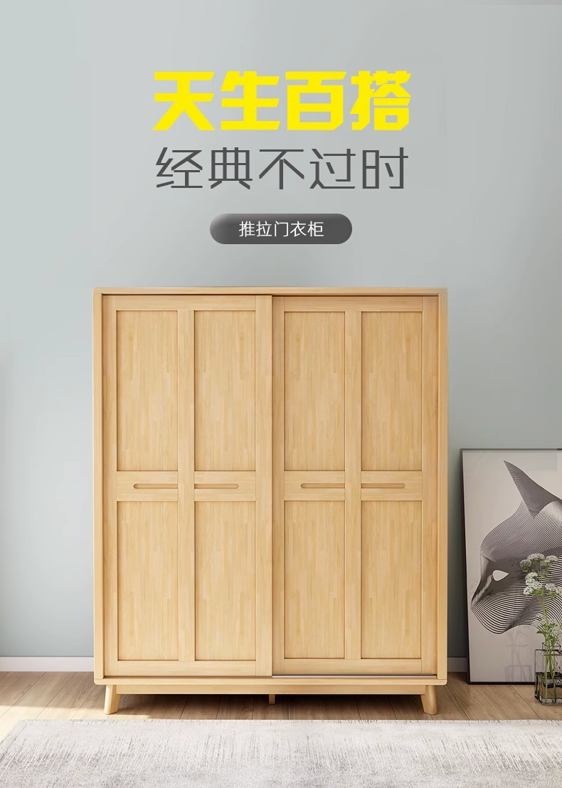 북유럽 단단한 나무 슬라이딩 도어 옷장 현대 간단한 작은 아파트 홈 마스터 침실 슬라이딩 도어 간단한 경제적 인 옷장