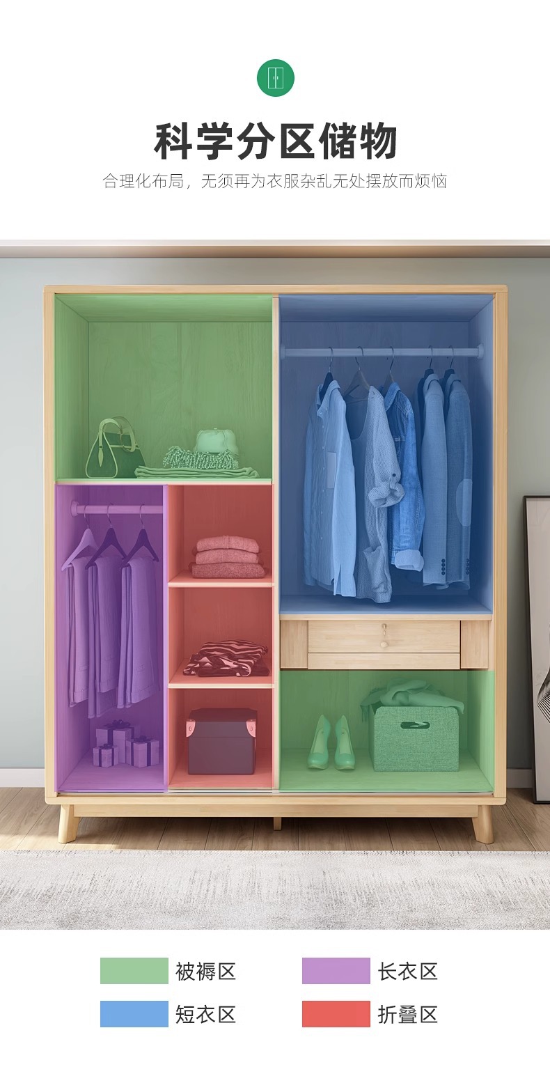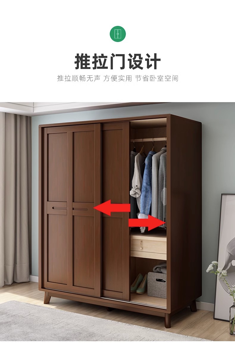 북유럽 단단한 나무 슬라이딩 도어 옷장 현대 간단한 작은 아파트 홈 마스터 침실 슬라이딩 도어 간단한 경제적 인 옷장스토어 가기