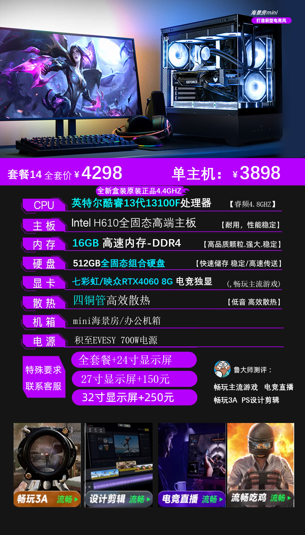 데스크탑 컴퓨터 i5i7 게이밍 독립 그래픽 카드 풀세트 가정용 사무용 디자인 13세대 14세대 데스크탑 컴퓨터스토어 가기
