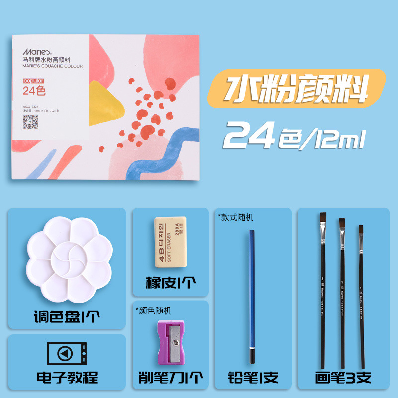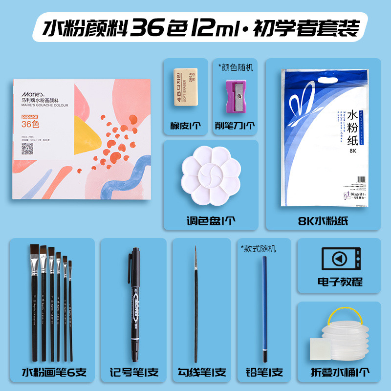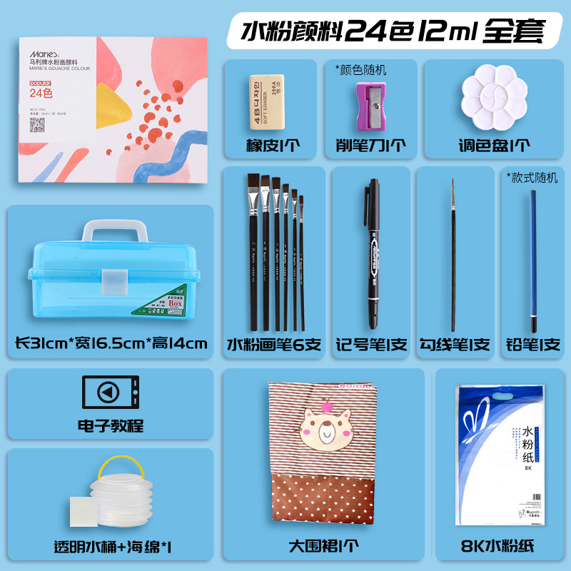 말리 수채화 안료 세트 어린이 관 손으로 그린 구 아슈 그림 학생 미술 그림 도구 상자 휴대용 전체 세트스토어 가기