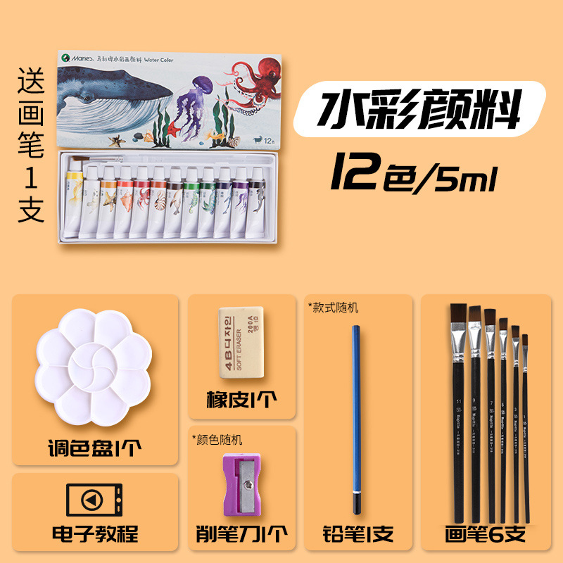 • 12 색 5ml 수채화-19 개 + 도구 상자