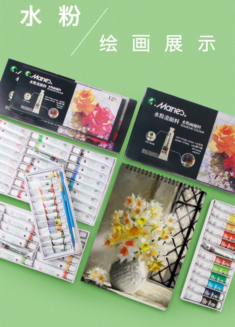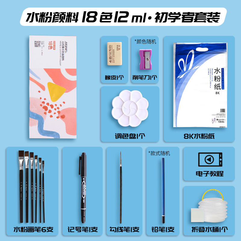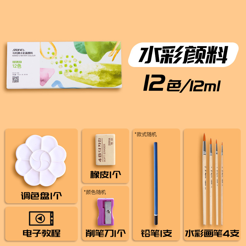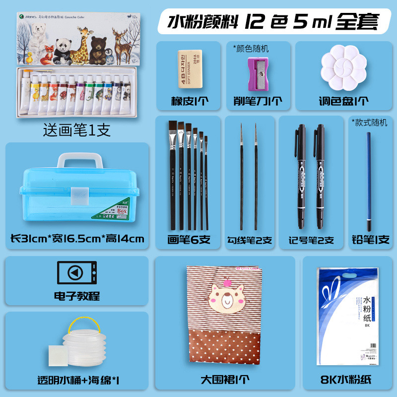 말리 수채화 안료 세트 어린이 관 손으로 그린 구 아슈 그림 학생 미술 그림 도구 상자 휴대용 전체 세트