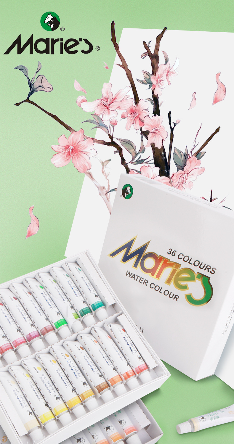 • 12ml 수채화 36 색-18 개 + 도구 상자