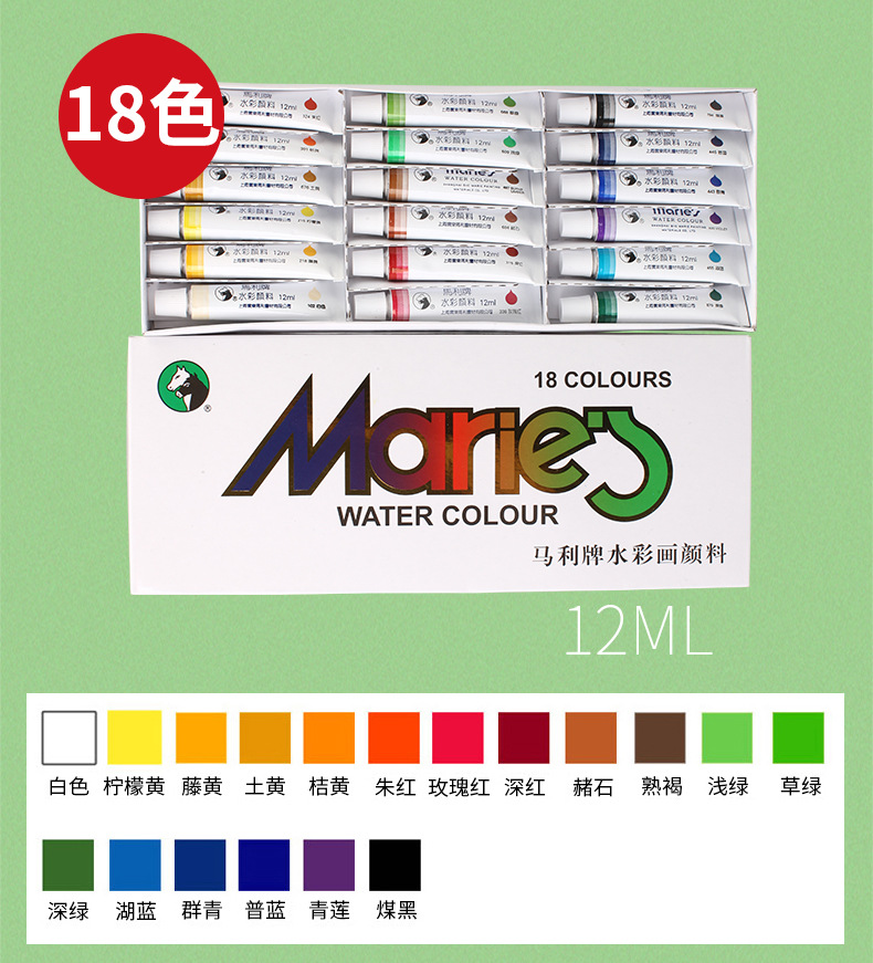 • 12ml 수채화 12 색-18 개 + 도구 상자