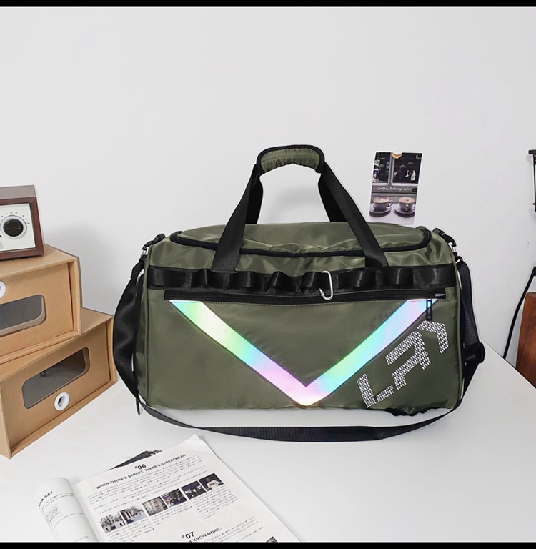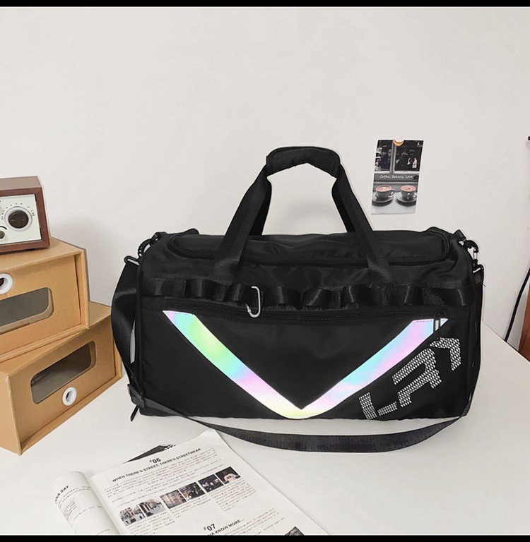 한국식 반사 스트립 여행 가방 트렌디 브랜드 새로운 대용량 단거리 더플 백 트렌디 패션 스포츠 체육관 가방