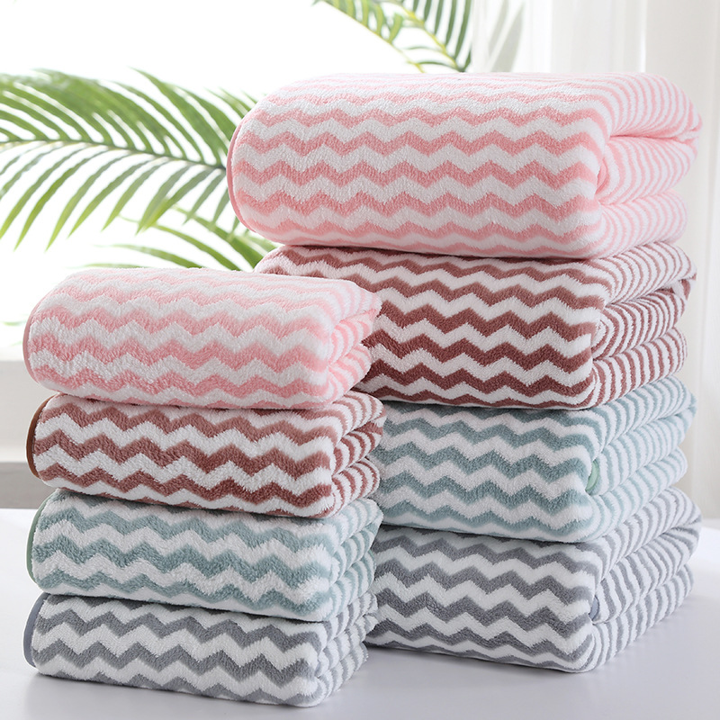 공장 도매 날실 니트 산호 양털 물 패턴 목욕 타월 가정용 성인 남녀 목욕 소프트 흡수 대형 목욕 타월
