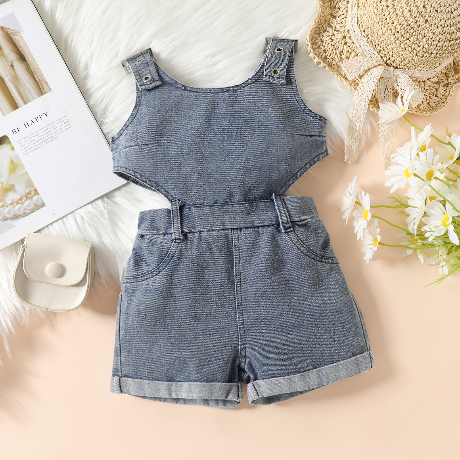 아동복 최소 주문 수량 1개, 2025년 신상 여아 여름 데님 멜빵 반바지, 여아 점프수트, 트렌디한 아동복스토어 가기