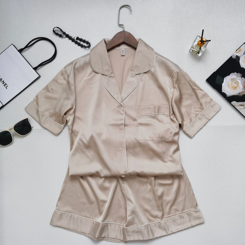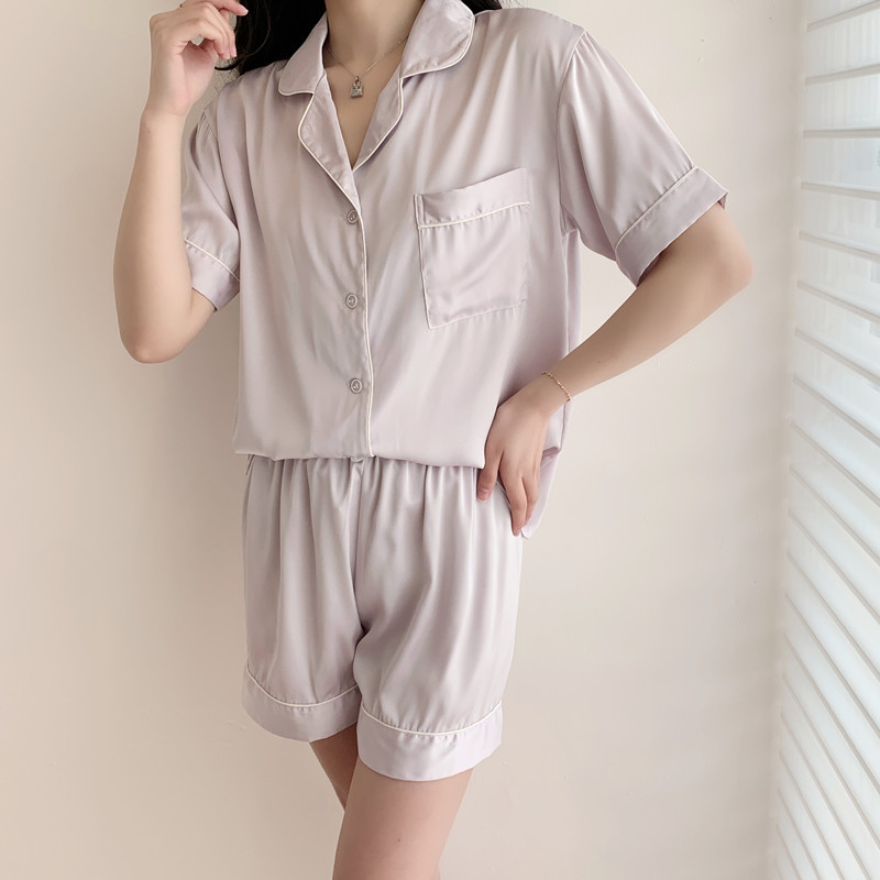 아이 주시 잠옷 여자의 여름 실크 아이스 실크 느슨한 캐주얼 반팔 반바지 실크 같은 가정복 세트스토어 가기