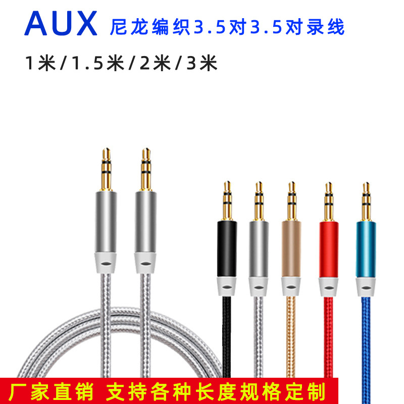 3.5 오디오 휴대 전화 이어폰 와이어 나일론 꼰 와이어 메탈 헤드 3.5 남성 대 공용 배선 AUX 자동차 녹음 와이어스토어 가기