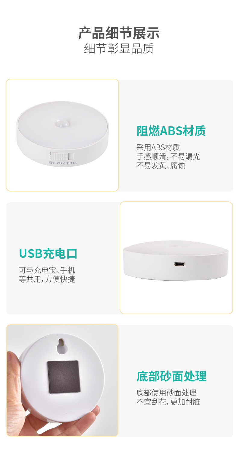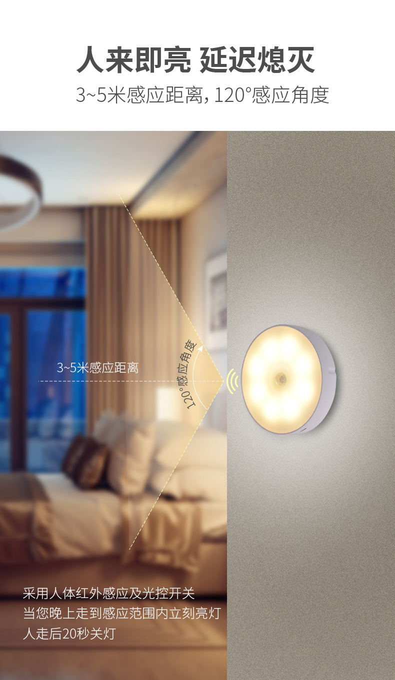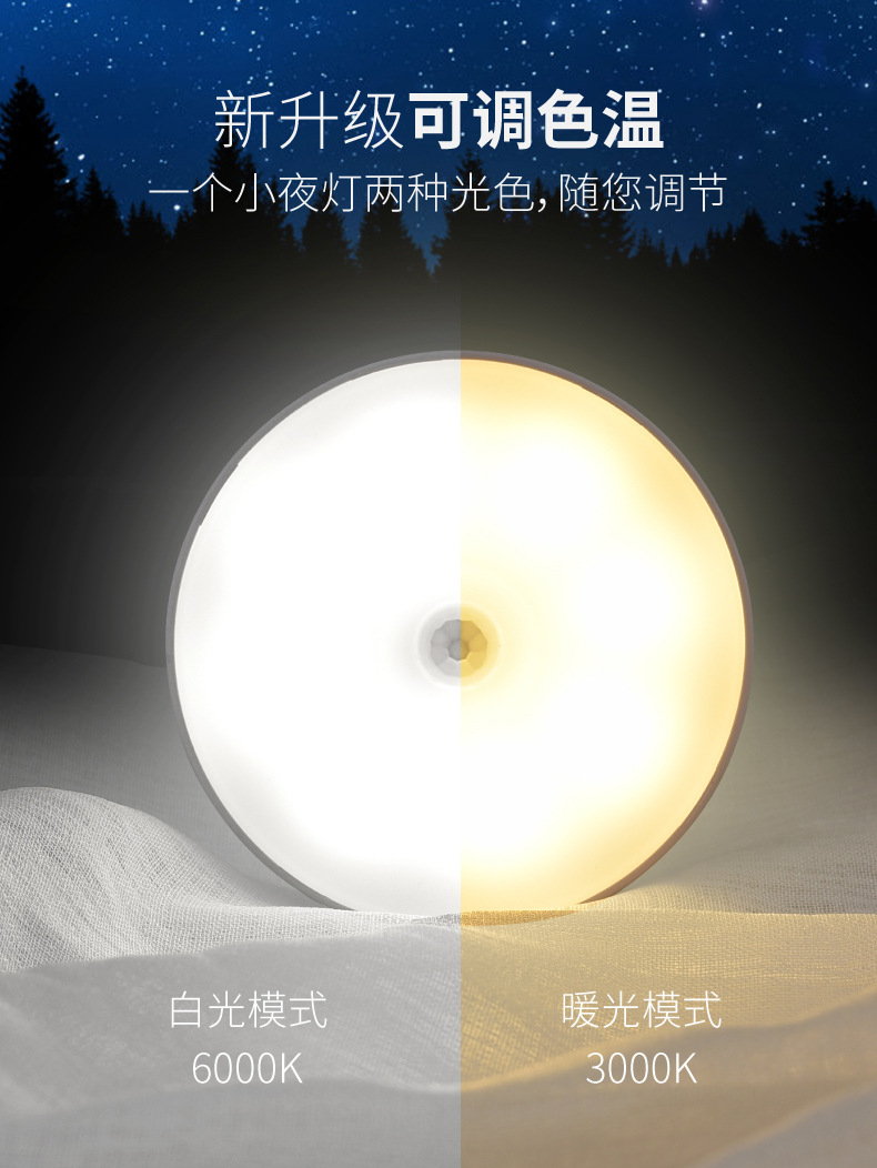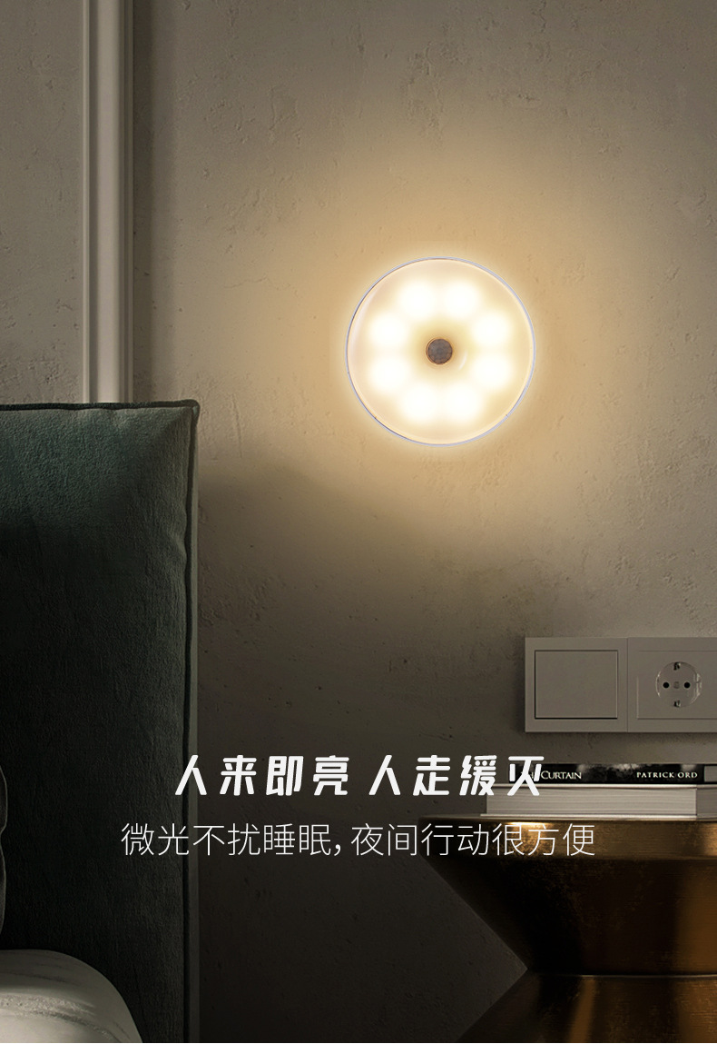 국경을 넘는 지능형 인체 적외선 감지 야간등 무선 LED 충전식 자석 침대 옆 침실용 소형 테이블 램프스토어 가기