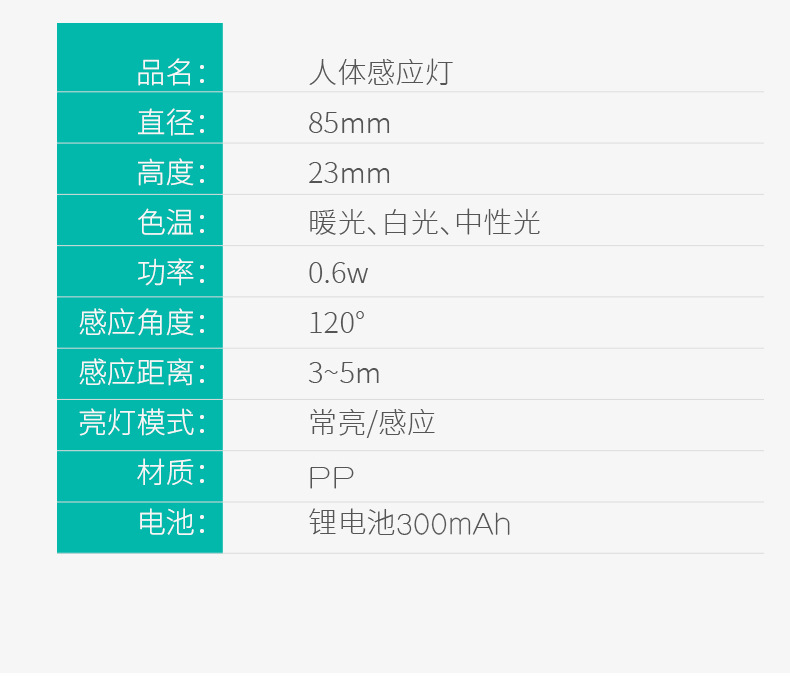 4.电池测试:连续点亮3000分钟,理论上满电感应模式下可使用60天,实测卫生间内安装,20多人日常使用2个多月后,仍能正常工作。