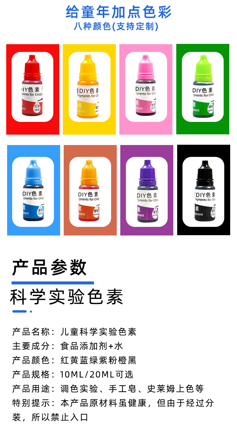 10ml 어린이 과학 실험 안료 색 재료 수용성 안료 안료 수제 과학 기술 작은 만들기 장난감스토어 가기