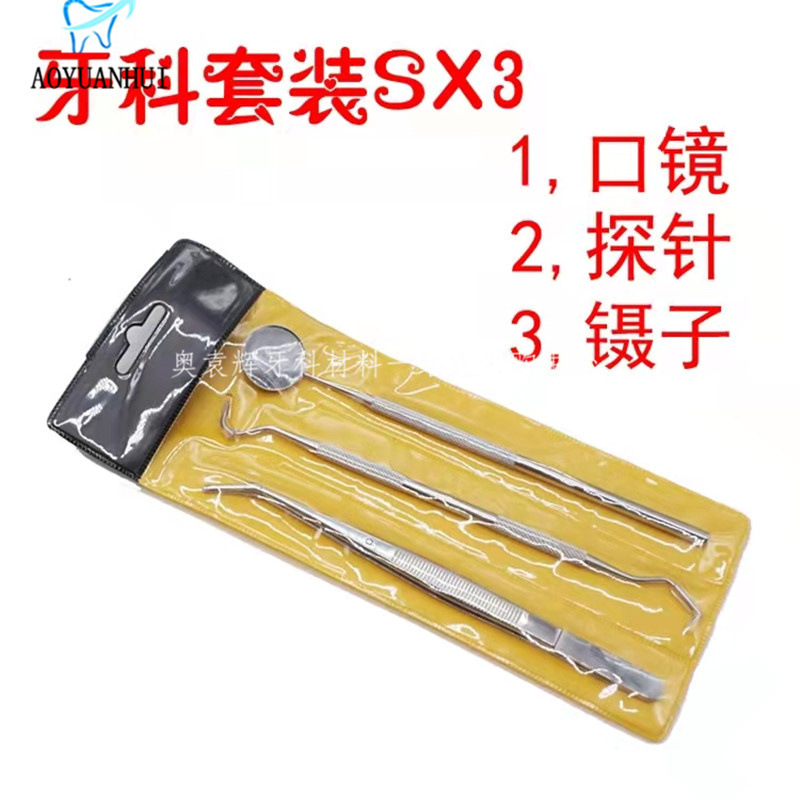 치과 용 스테인레스 스틸 3 피스 세트 입 거울 핀셋 프로브 제거 치과 미적분 구강 관리 세트