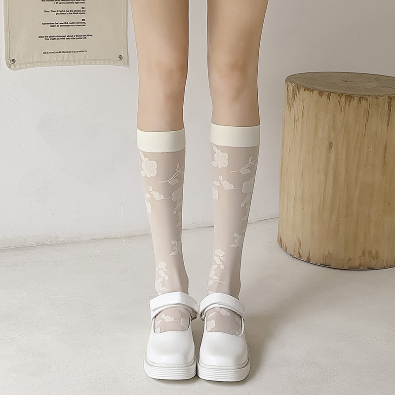 긴 양말 여성 봄과 여름 얇은 통기성 송아지 양말 검정 일본 JK 바람 높은 양말 인 조수 면 양말 도매스토어 가기