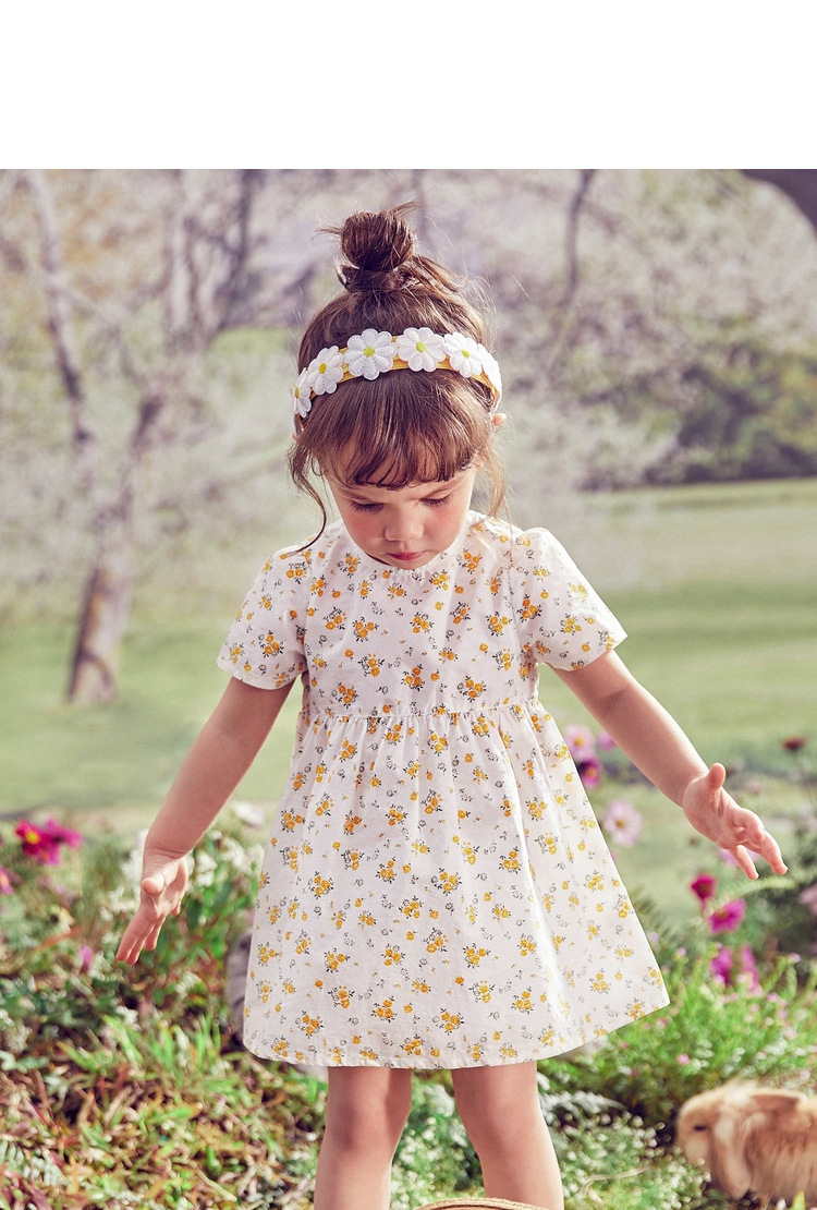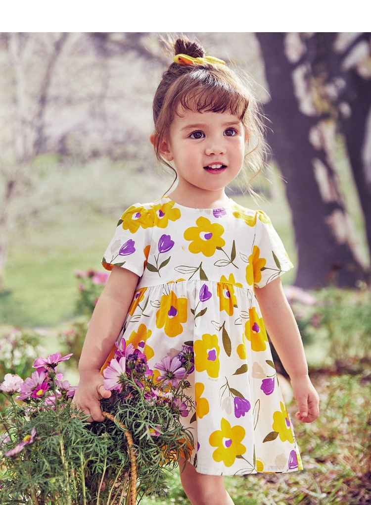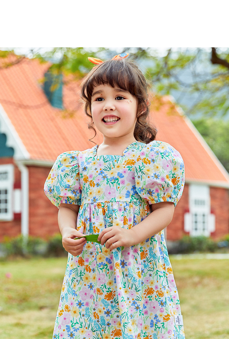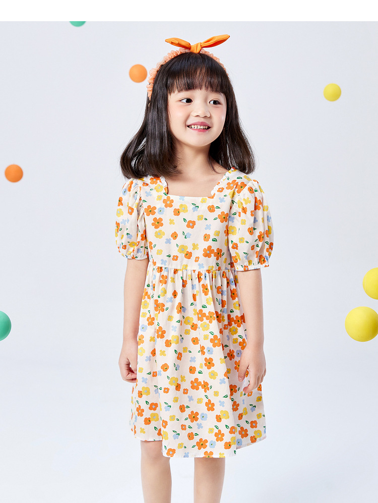 소녀의 원피스 공주 원피스 2022 여름 면 대형 어린이 아기 스퀘어 칼라 꽃 원피스 목가적 인 활스토어 가기