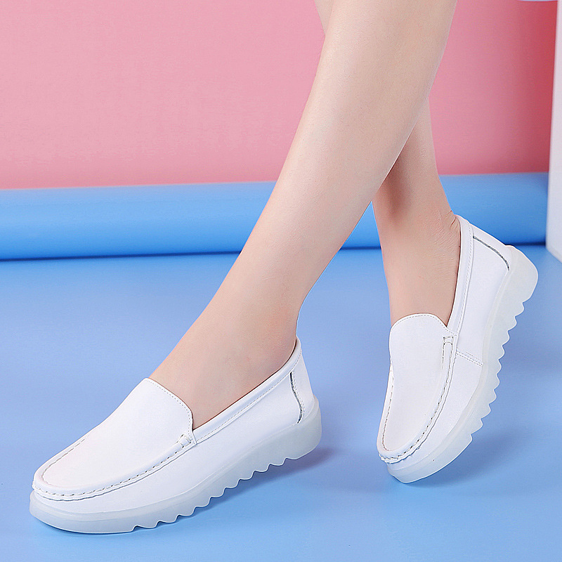 봄과 여름 중공 플랫 미끄럼 방지 간호사 신발 유행 모든 경기 편안한 흰색 신발 부드러운 밑창 피곤하지 않은 콩 신발스토어 가기