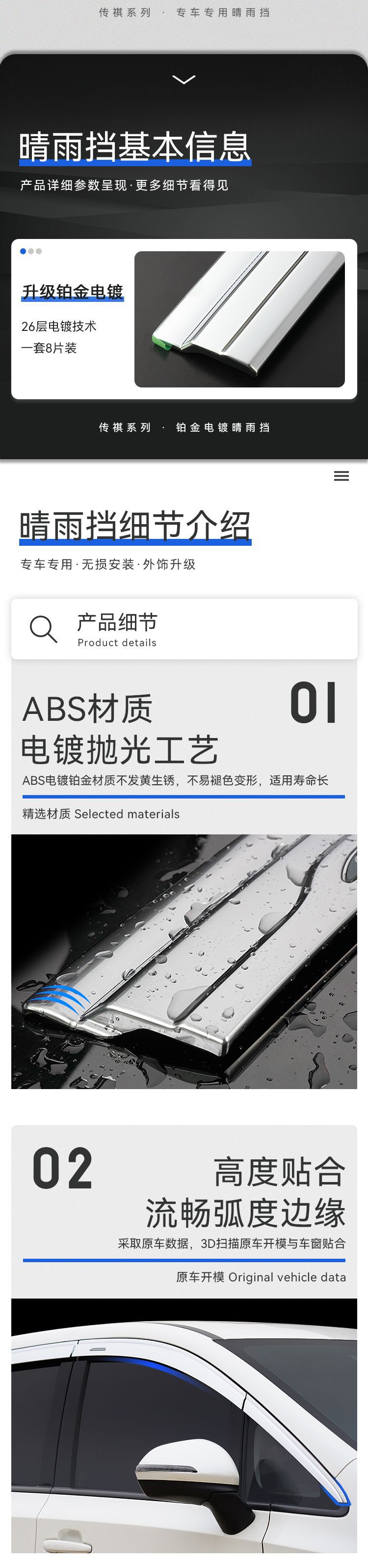 • [Trumpchi M8] 2017-2021-전기도금 백금 비바람 보호막(8개)