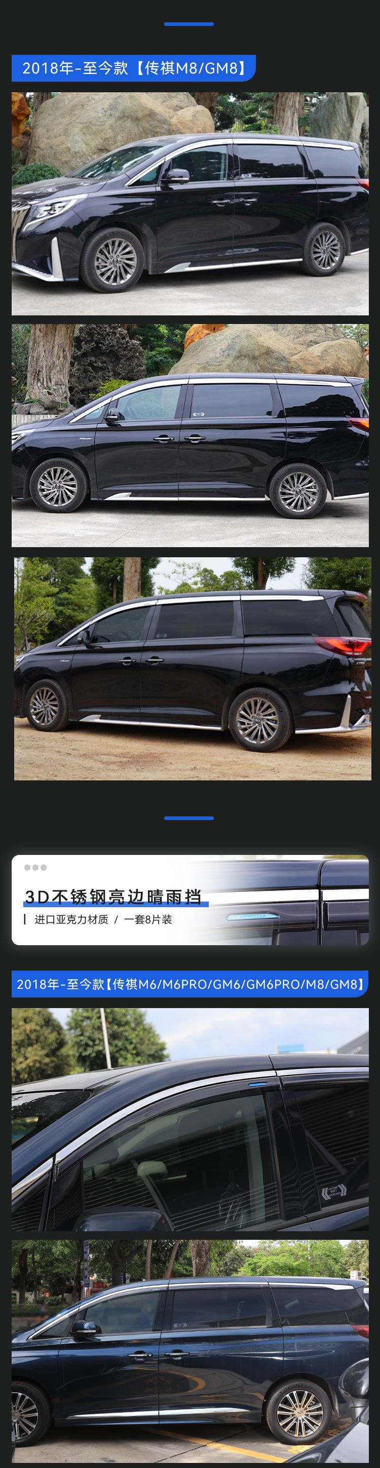 • [Trumpchi M8] 2017-2021-3D 스테인레스 스틸 브라이트 엣지 레인 및 레인 쉴드 (8개)