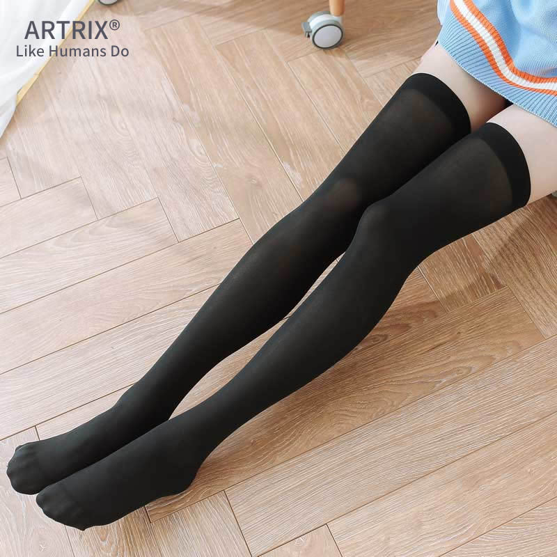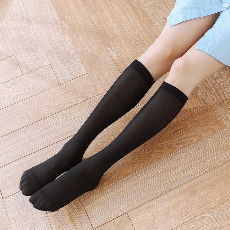 무릎 위에 레이어드 양말 여성용 흰색 미끄럼 방지 허벅지 블랙 실크 스타킹 얇은 미드 튜브 종아리 양말 블랙 in 긴 튜브 JK스토어 가기