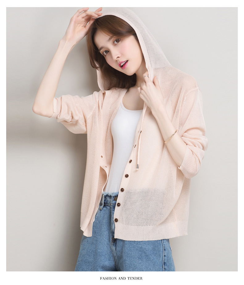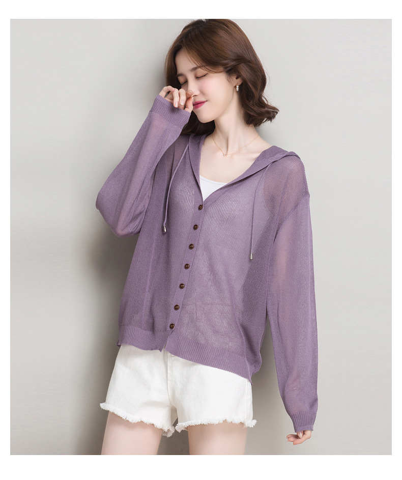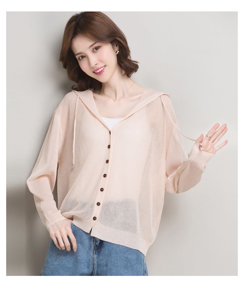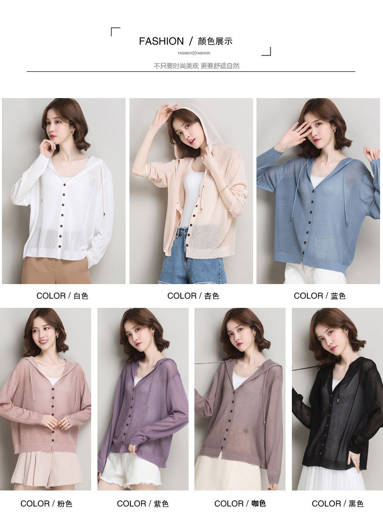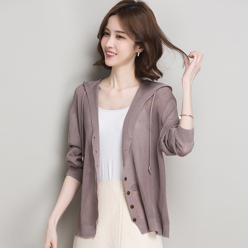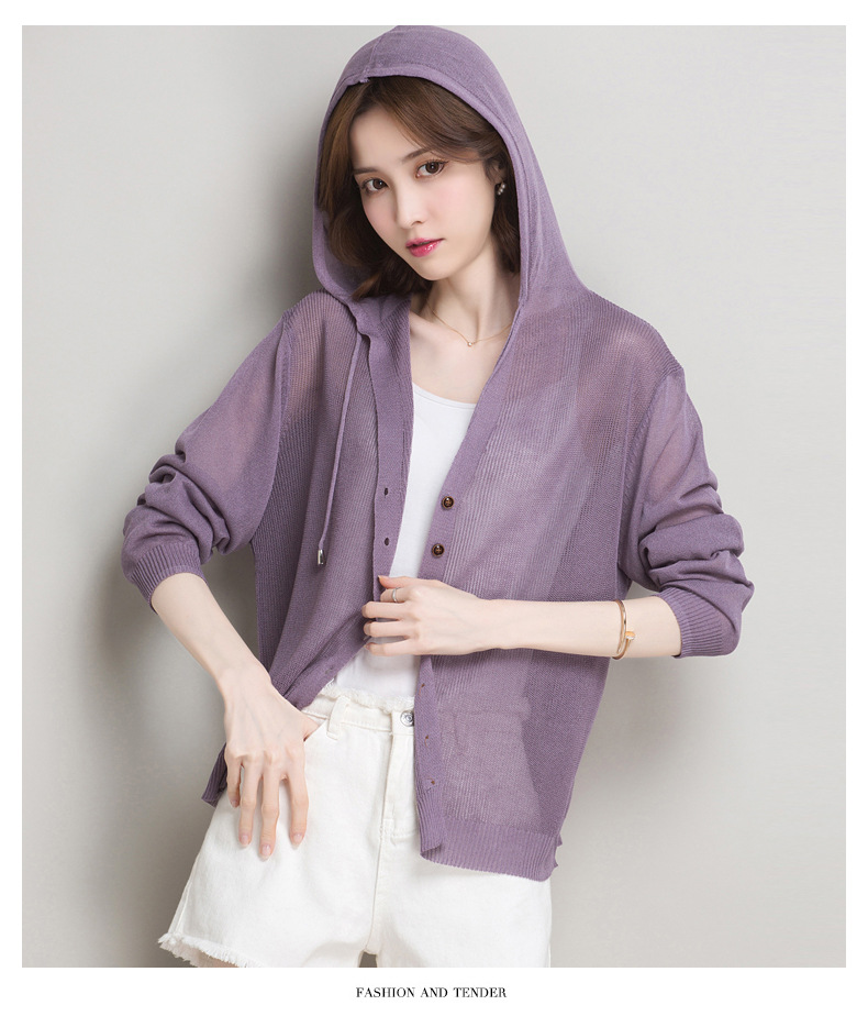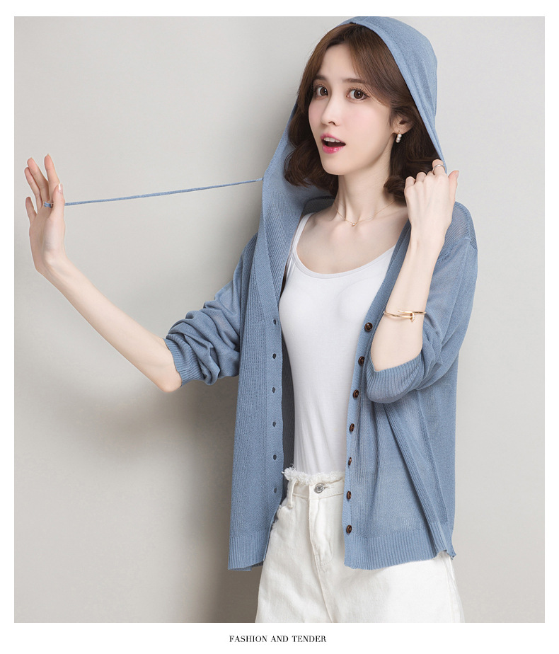 아이스 실크 후드 니트 카디건 자켓 여성 얇은 여름 신제품 일본과 한국 인기 솔리드 컬러 루즈 썬 프로텍션 탑 숄