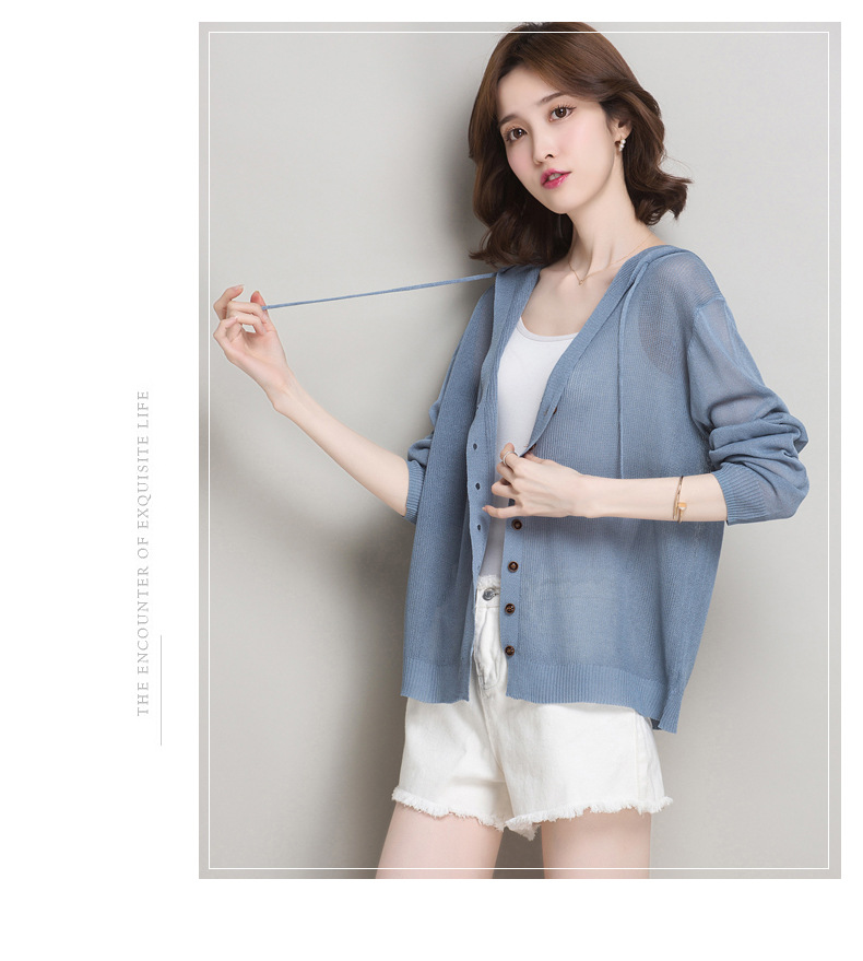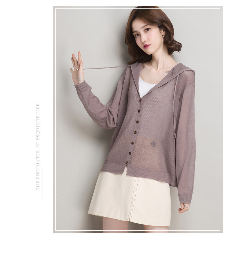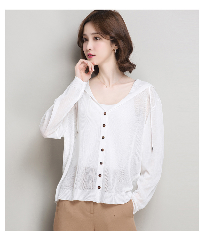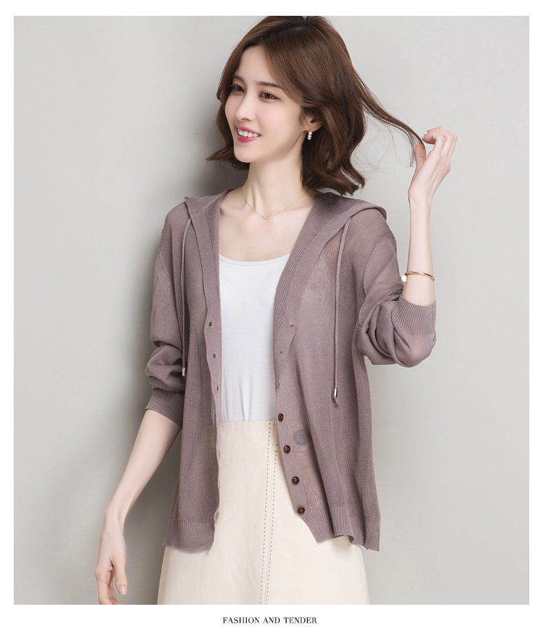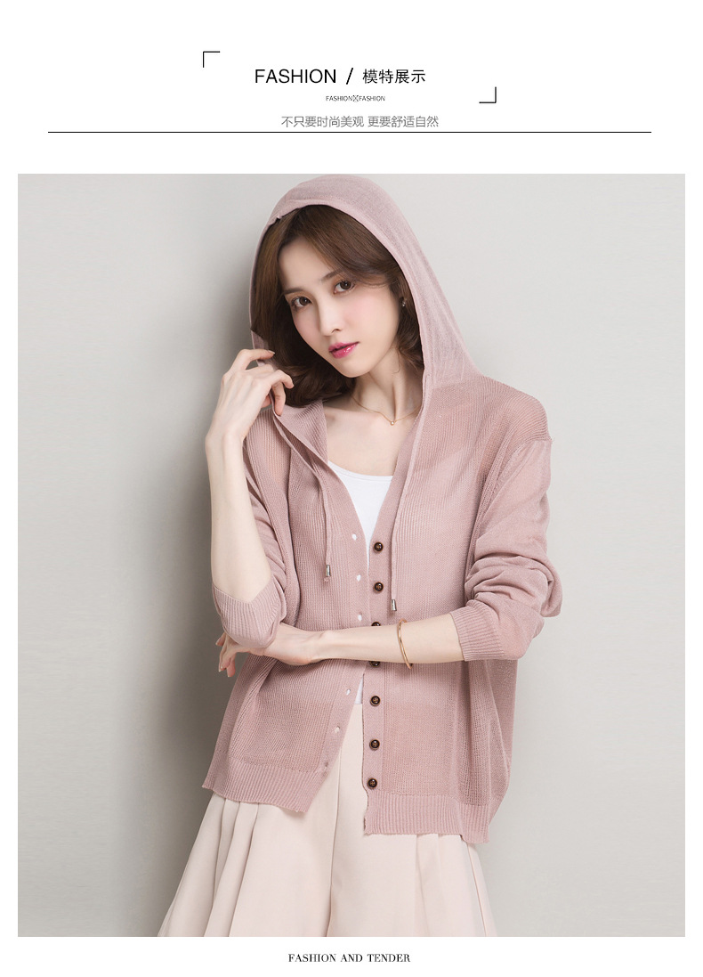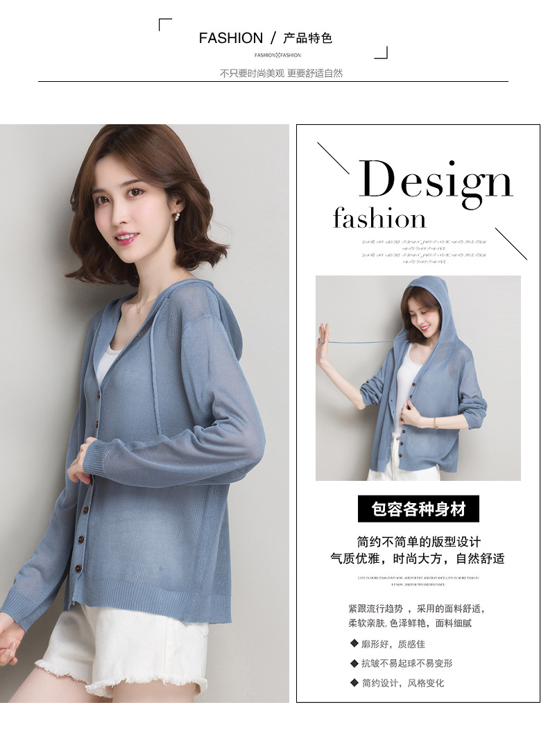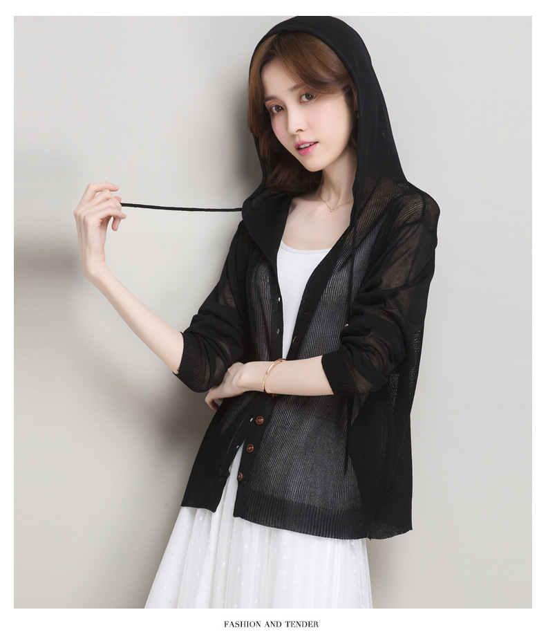 아이스 실크 후드 니트 카디건 자켓 여성 얇은 여름 신제품 일본과 한국 인기 솔리드 컬러 루즈 썬 프로텍션 탑 숄