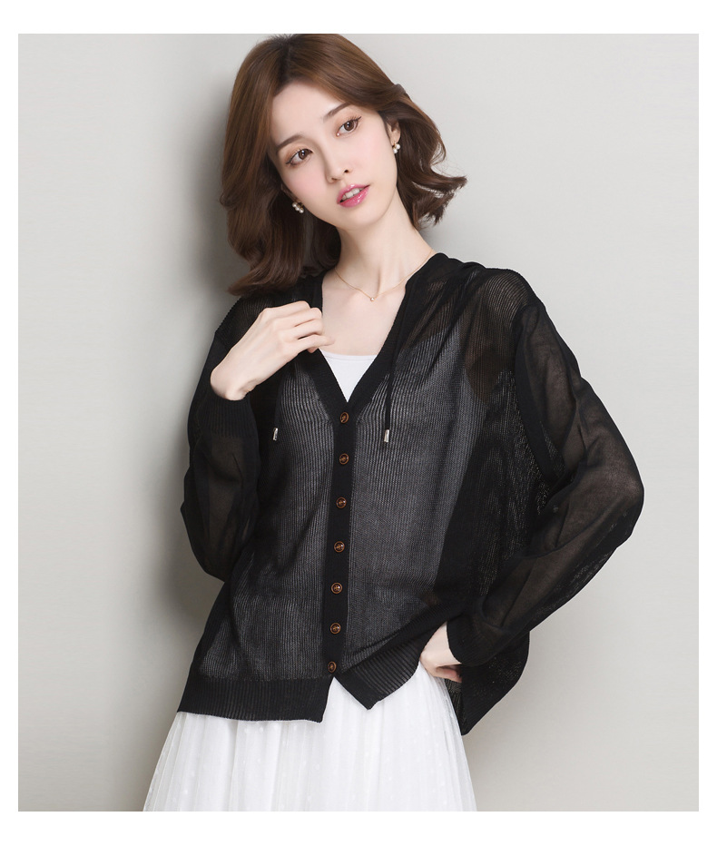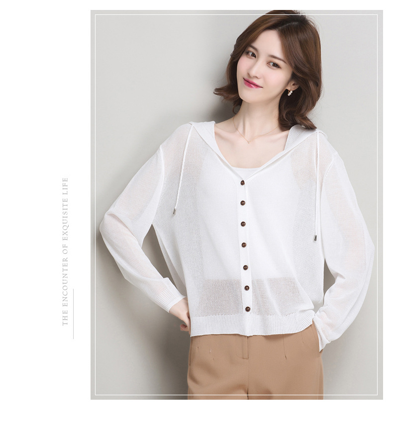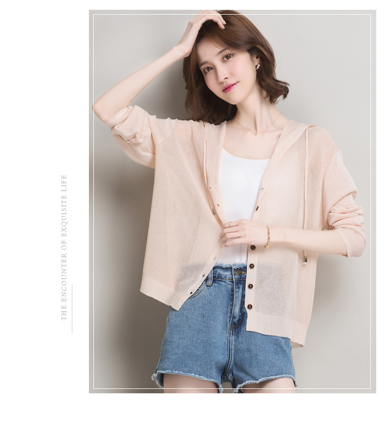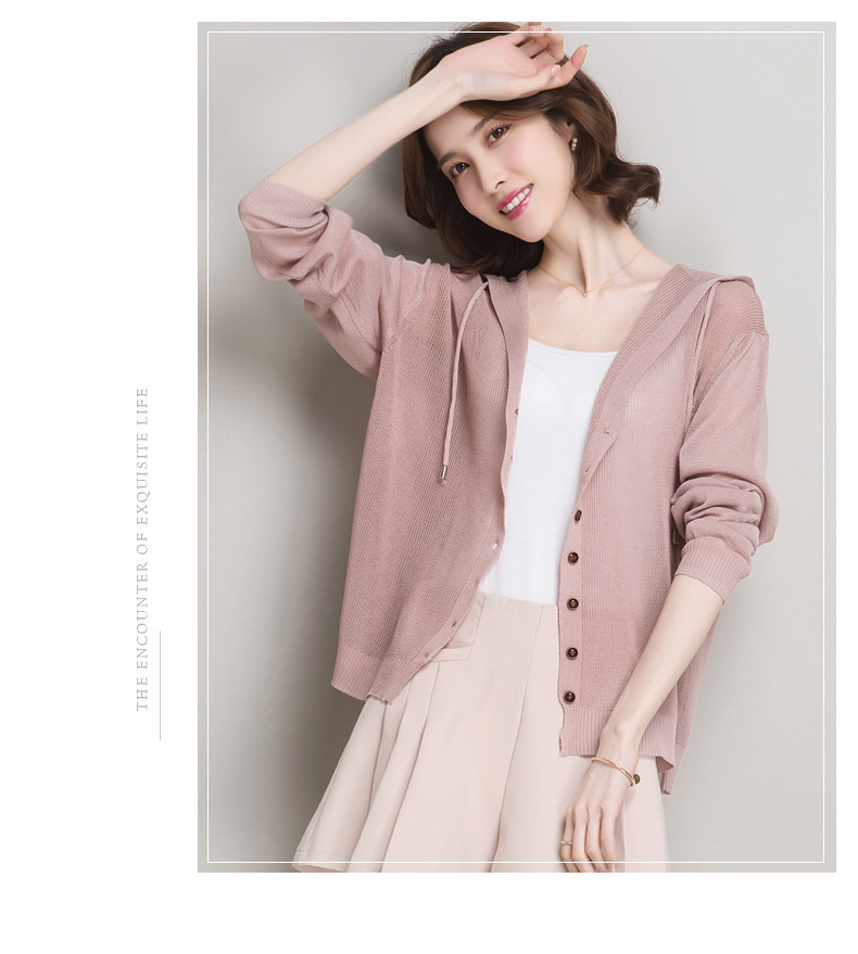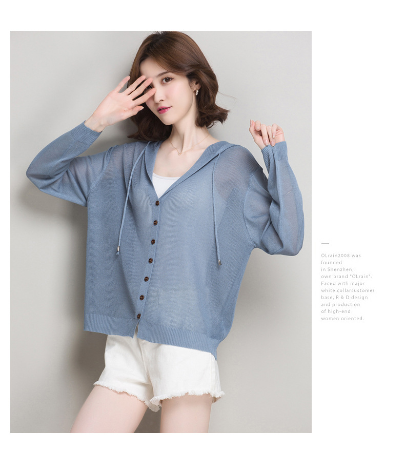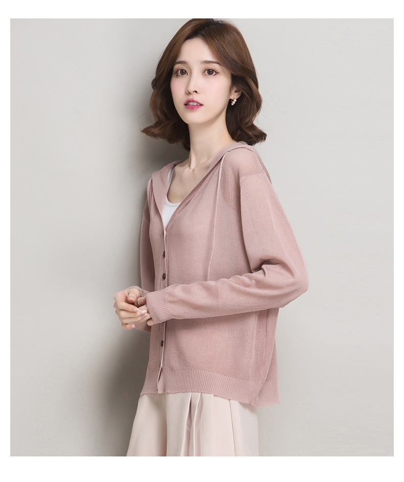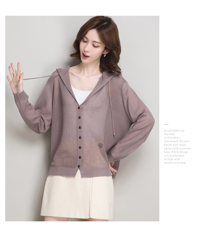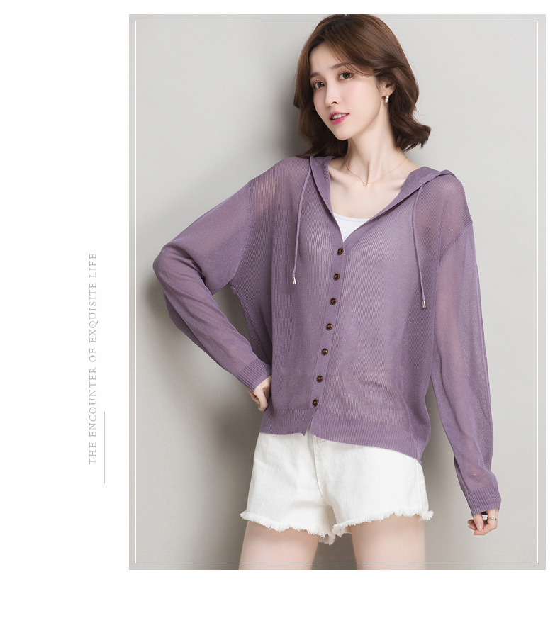 아이스 실크 후드 니트 카디건 자켓 여성 얇은 여름 신제품 일본과 한국 인기 솔리드 컬러 루즈 썬 프로텍션 탑 숄