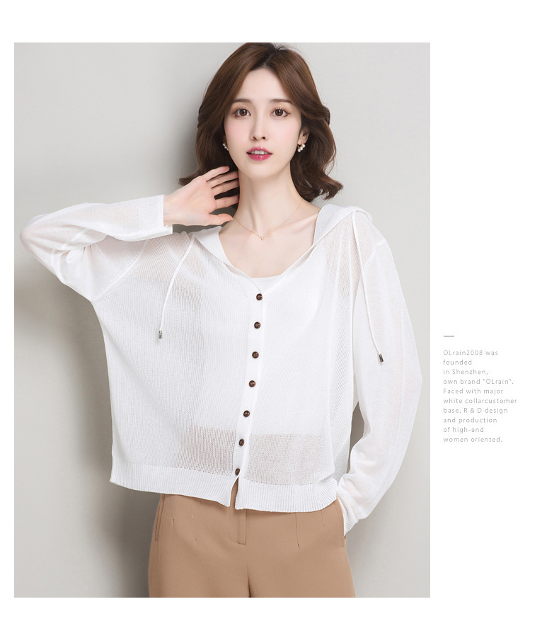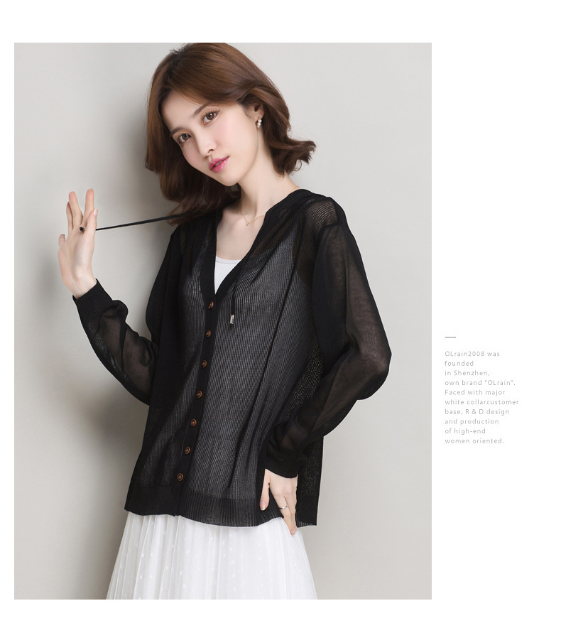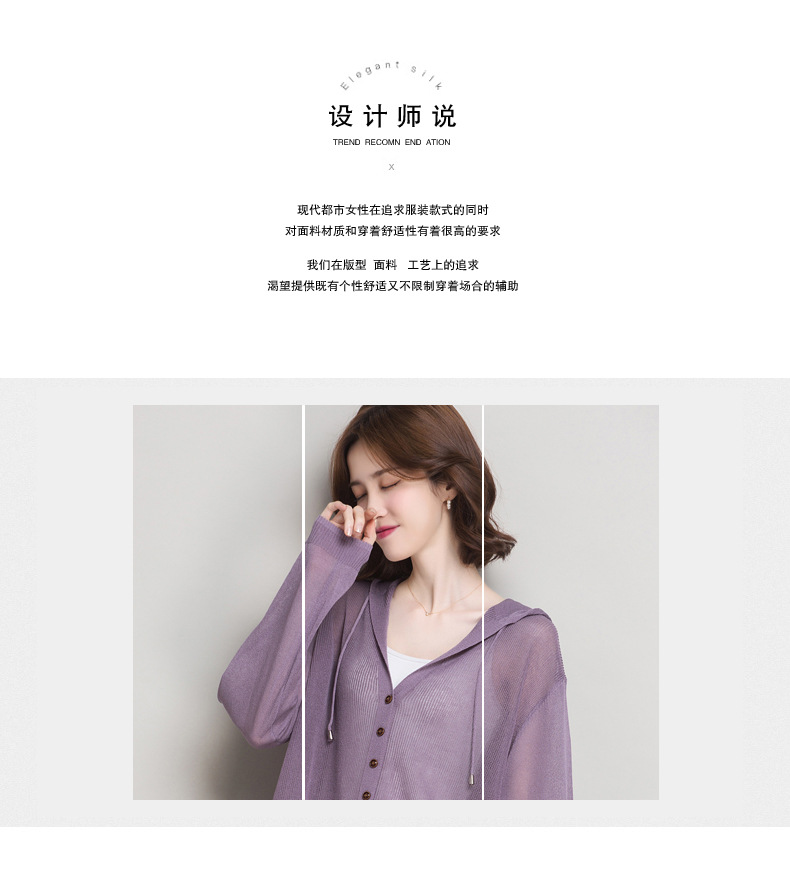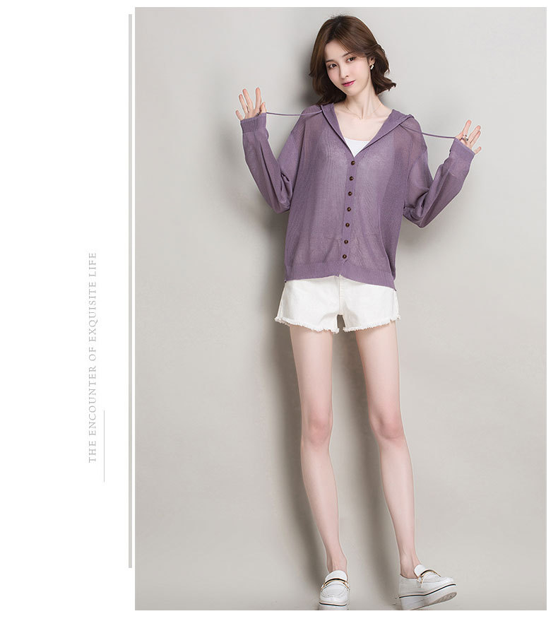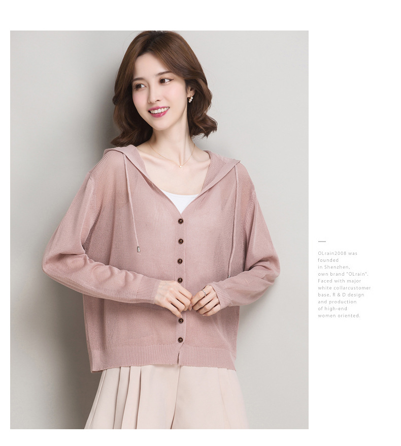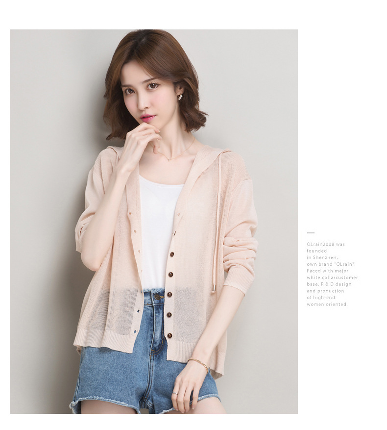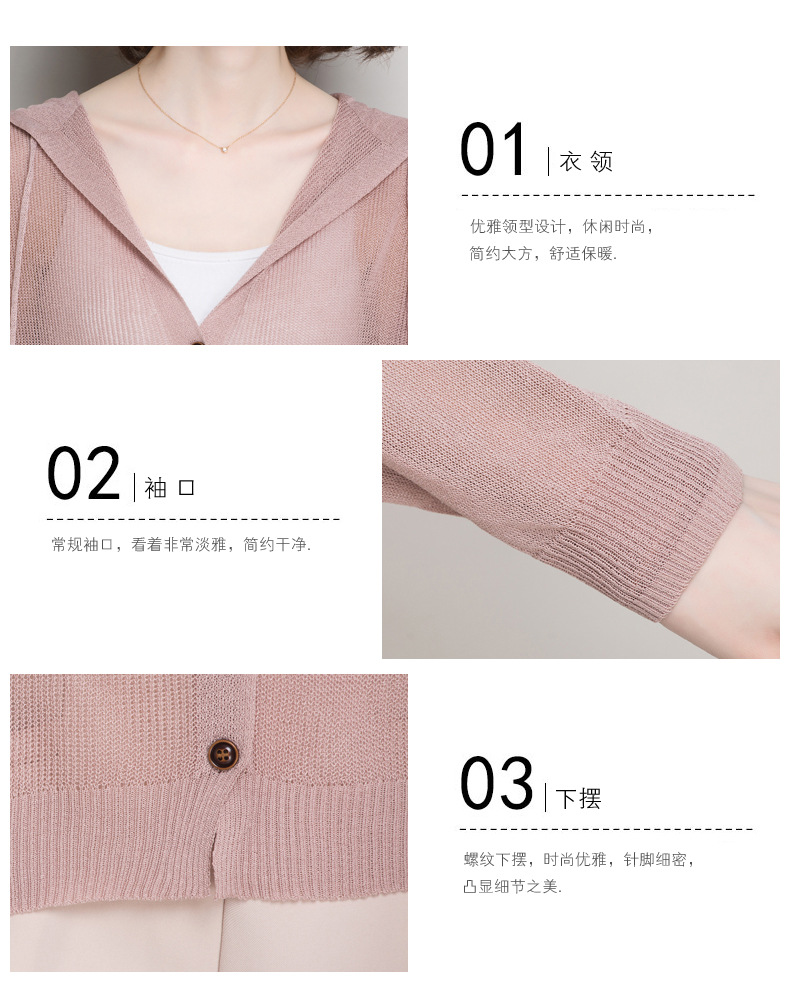 아이스 실크 후드 니트 카디건 자켓 여성 얇은 여름 신제품 일본과 한국 인기 솔리드 컬러 루즈 썬 프로텍션 탑 숄