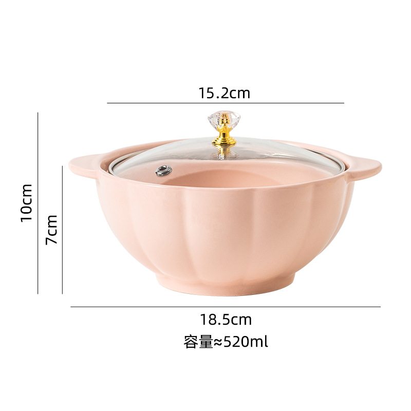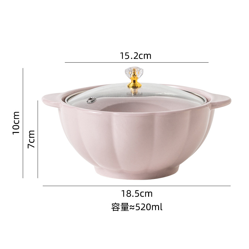 핑크 옐로우 퍼플 블루 전자레인지 식기세척기 사용 가능 6 인치 520ml (유리 뚜껑 포함) 더블 이어 누들 그릇 수프 그릇