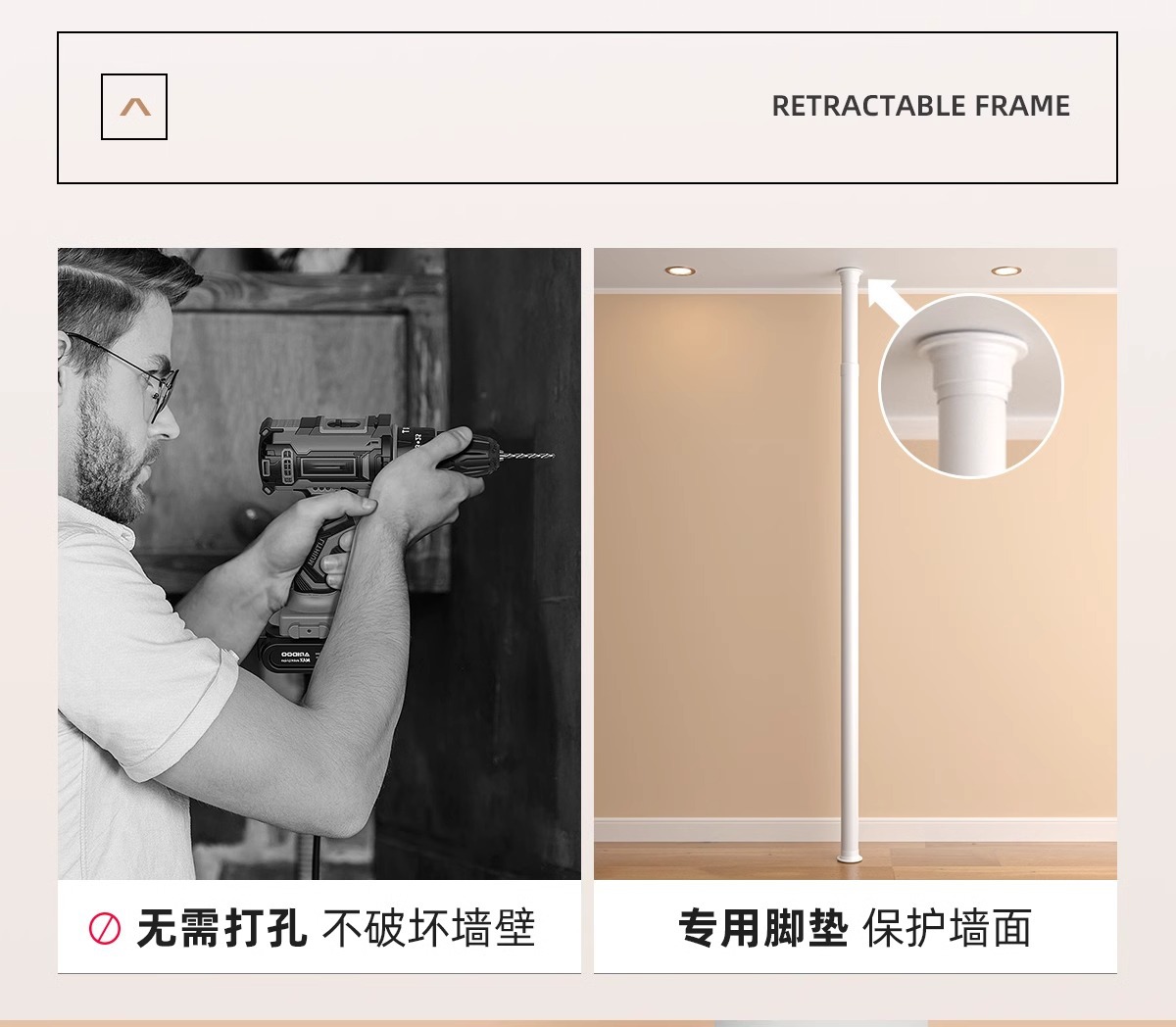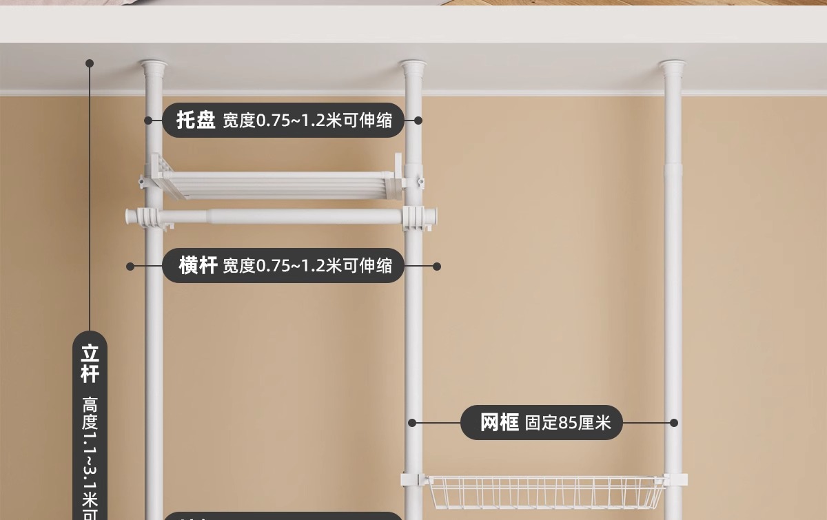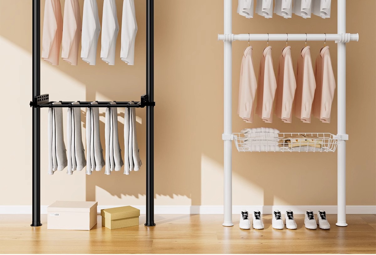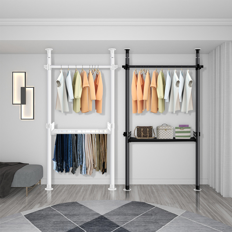 옷걸이 스탠드, 바닥형 옷걸이, 가정용 무타공 발코니 신축봉 건조대, 옷걸이 스탠드, 바닥형 가정용