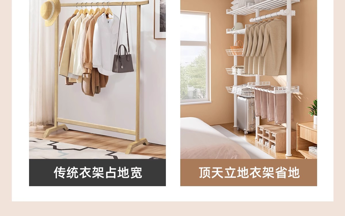 옷걸이 스탠드, 바닥형 옷걸이, 가정용 무타공 발코니 신축봉 건조대, 옷걸이 스탠드, 바닥형 가정용스토어 가기