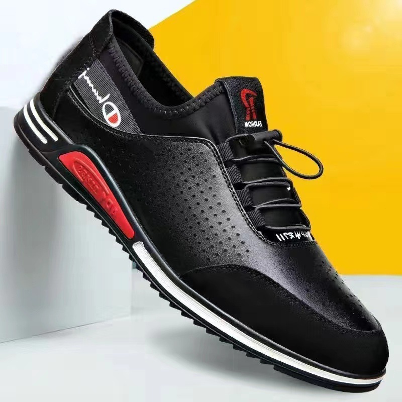 2022 여름 새로운 중공 가죽 신발 남성용 메쉬 통기성 캐주얼 신발 한국식 모든 매치 소프트 솔 미끄럼 방지 게으른 신발스토어 가기