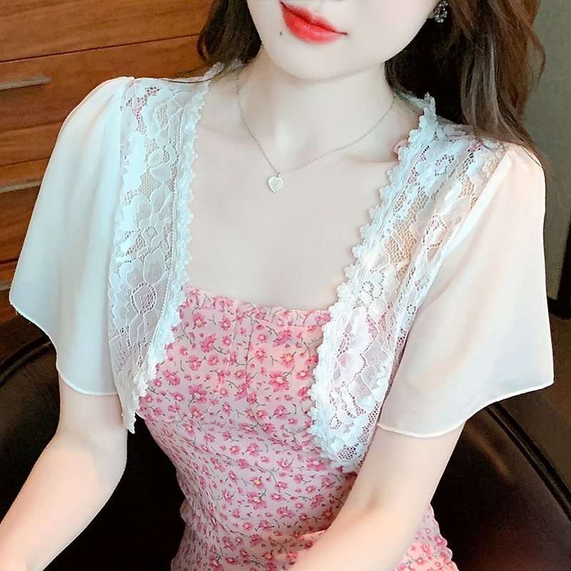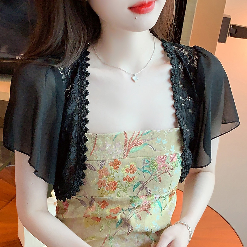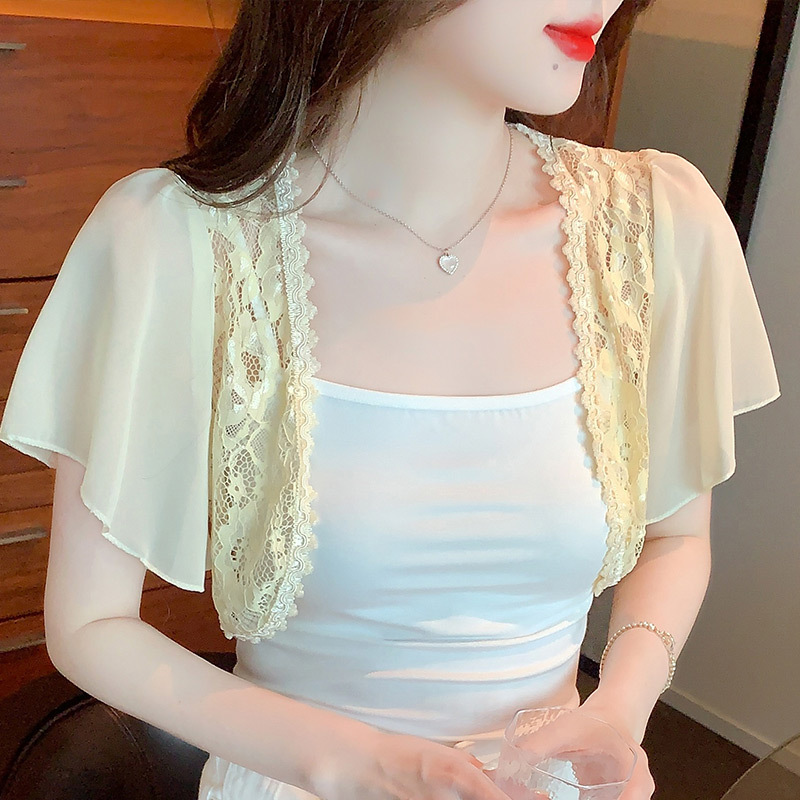 레이스 카디건 여성의 여름 새로운 모든 경기 짧은 쉬폰 탑 숄 재킷 플러스 사이즈 매칭 스커트 조끼스토어 가기