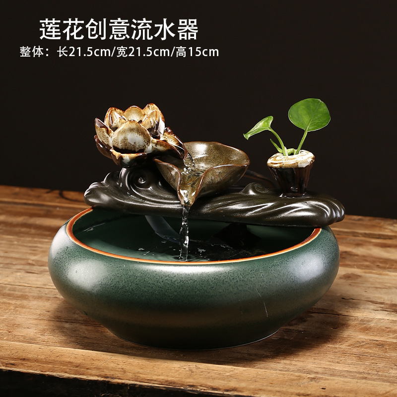 새로운 중국 스타일 행운의 물 장식품 세라믹 작은 데스크탑 거실 티 테이블 사무실 장식 순환 물 풍경