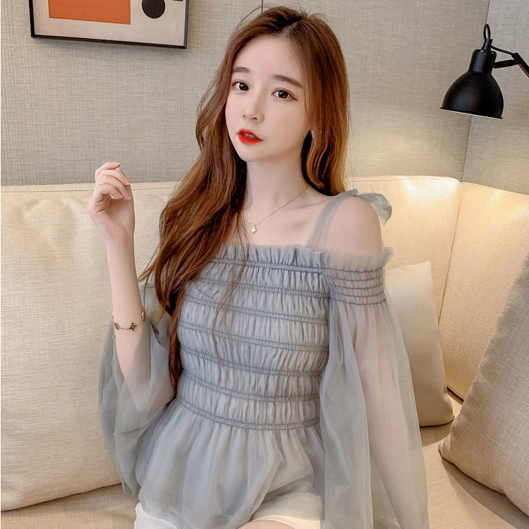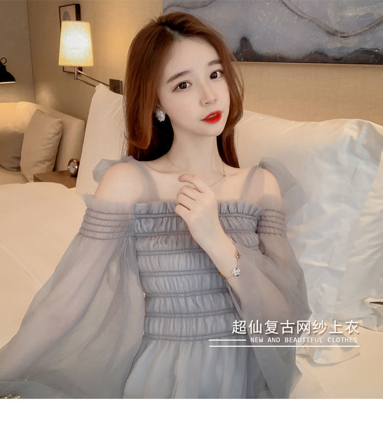 순수하고 욕망 스파이스 걸 탑 디자인 센스 달콤하고 매운 짧은 셔츠 오프 숄더 웨스턴 스타일 슈퍼 요정 옷