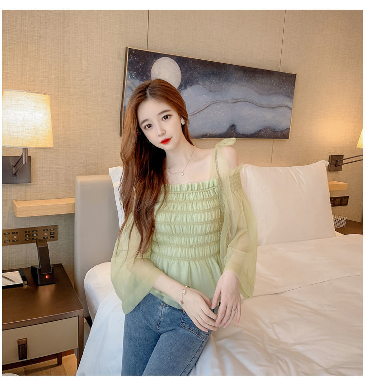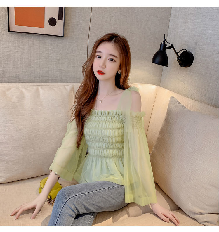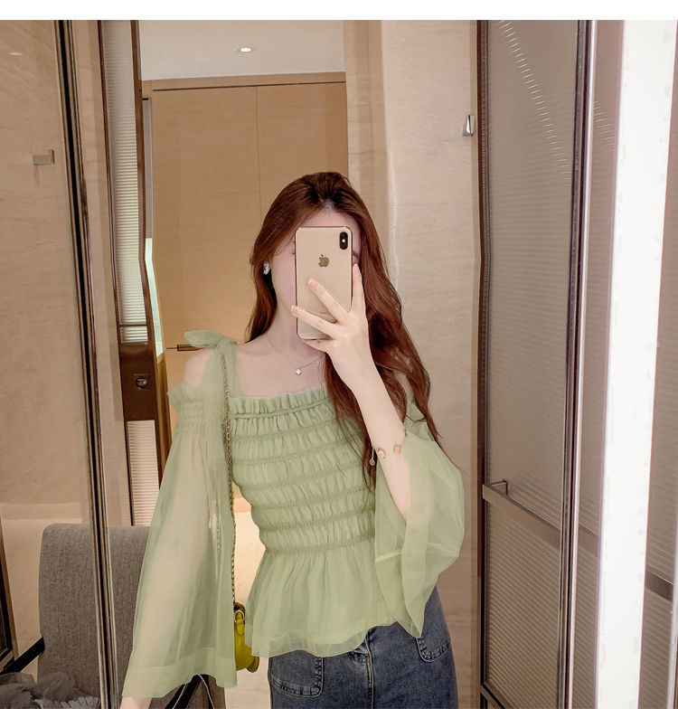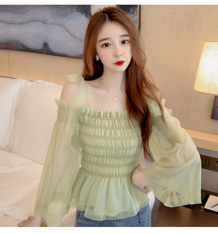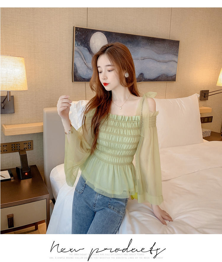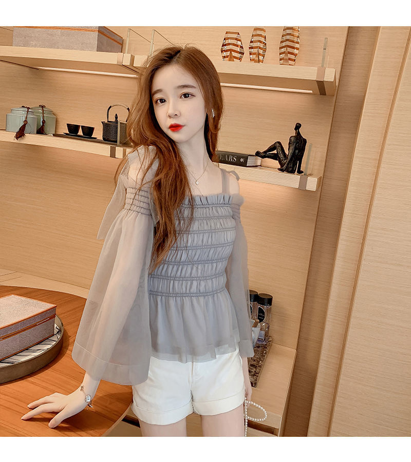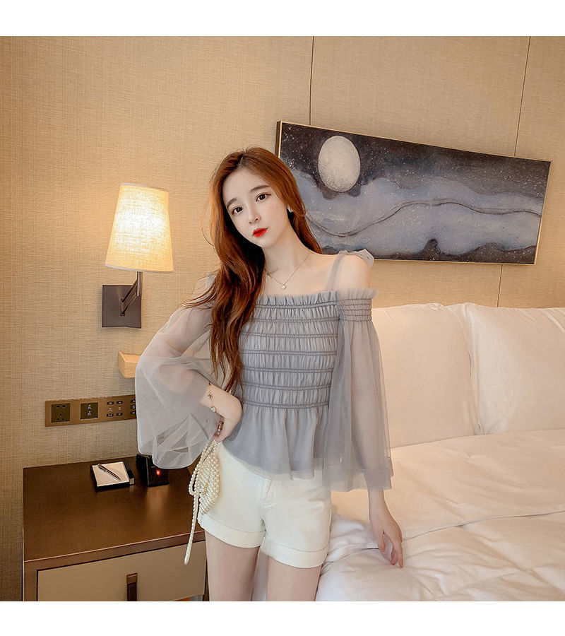 순수하고 욕망 스파이스 걸 탑 디자인 센스 달콤하고 매운 짧은 셔츠 오프 숄더 웨스턴 스타일 슈퍼 요정 옷스토어 가기